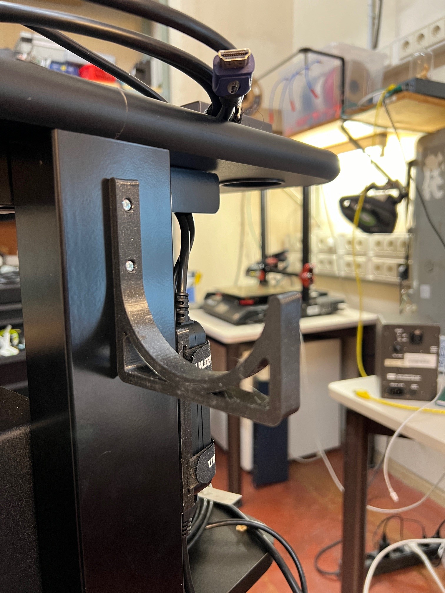 Chiếc móc cứng cáp (khoảng 90x90 mm) được thiết kế để treo dây cáp an toàn trên xe đẩy hàng. Nó dễ dàng đỡ được dây XLR và dây nguồn, giữ thăng bằng khi xe di chuyển. Được bắt vít bằng 2 con ốc M3.