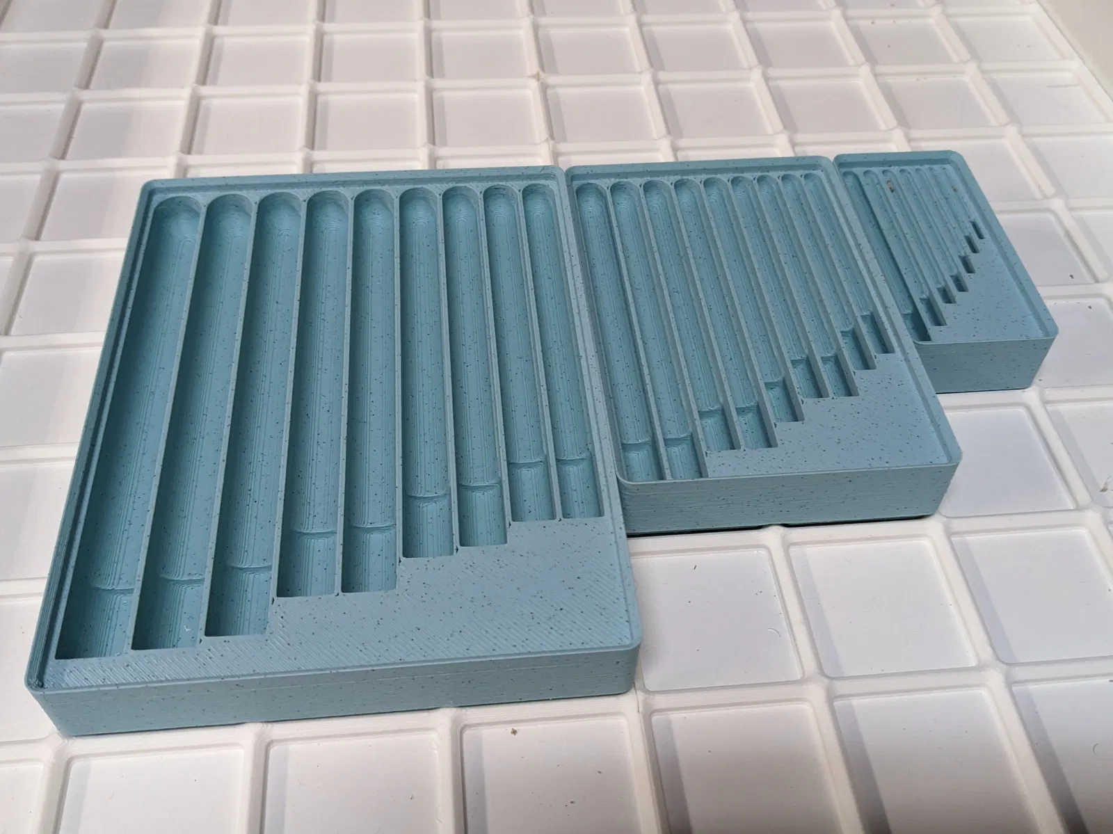 Kệ giữ mũi khoan Gridfinity này có thể chứa một bộ mũi khoan metric tiêu chuẩn từ 1mm đến 13mm. Kệ giữ mũi khoan bao gồm ba phần (nhỏ, vừa và lớn), bạn in hết cả ba để chứa một bộ tiêu chuẩn. Bao gồm các phiên bản có và không có lỗ nam châm ở đế. Xem thêm Kệ giữ mũi khoan Forstner Gridfinity của tôi: