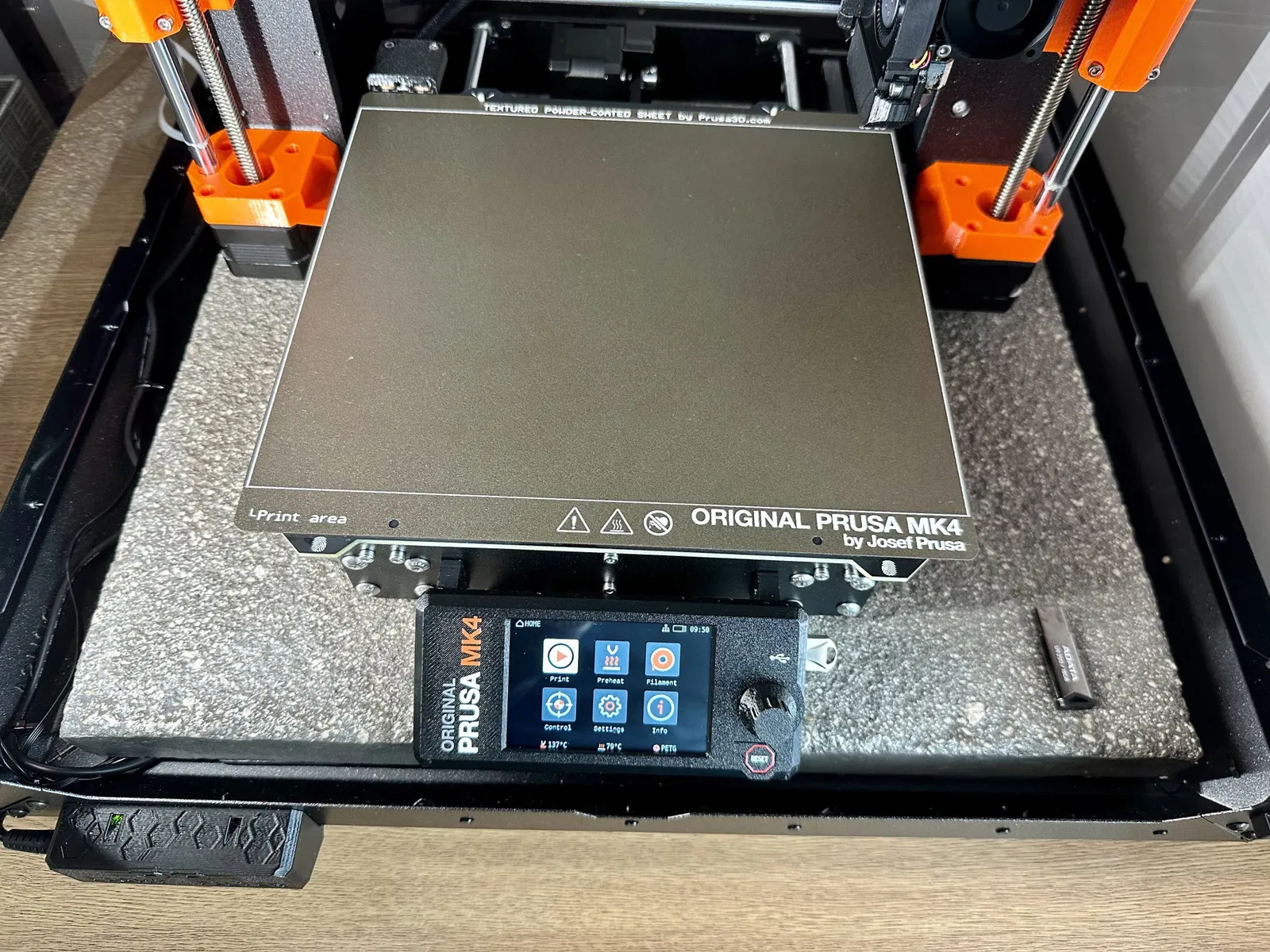 Nếu giống như tôi, bạn giữ màn hình LCD trên máy in Prusa bên trong enclosure, điều này cũng giúp dễ dàng tiếp cận và nhìn thấy màn hình vì nó bây giờ được nâng lên một chút nhờ tấm bê tông…