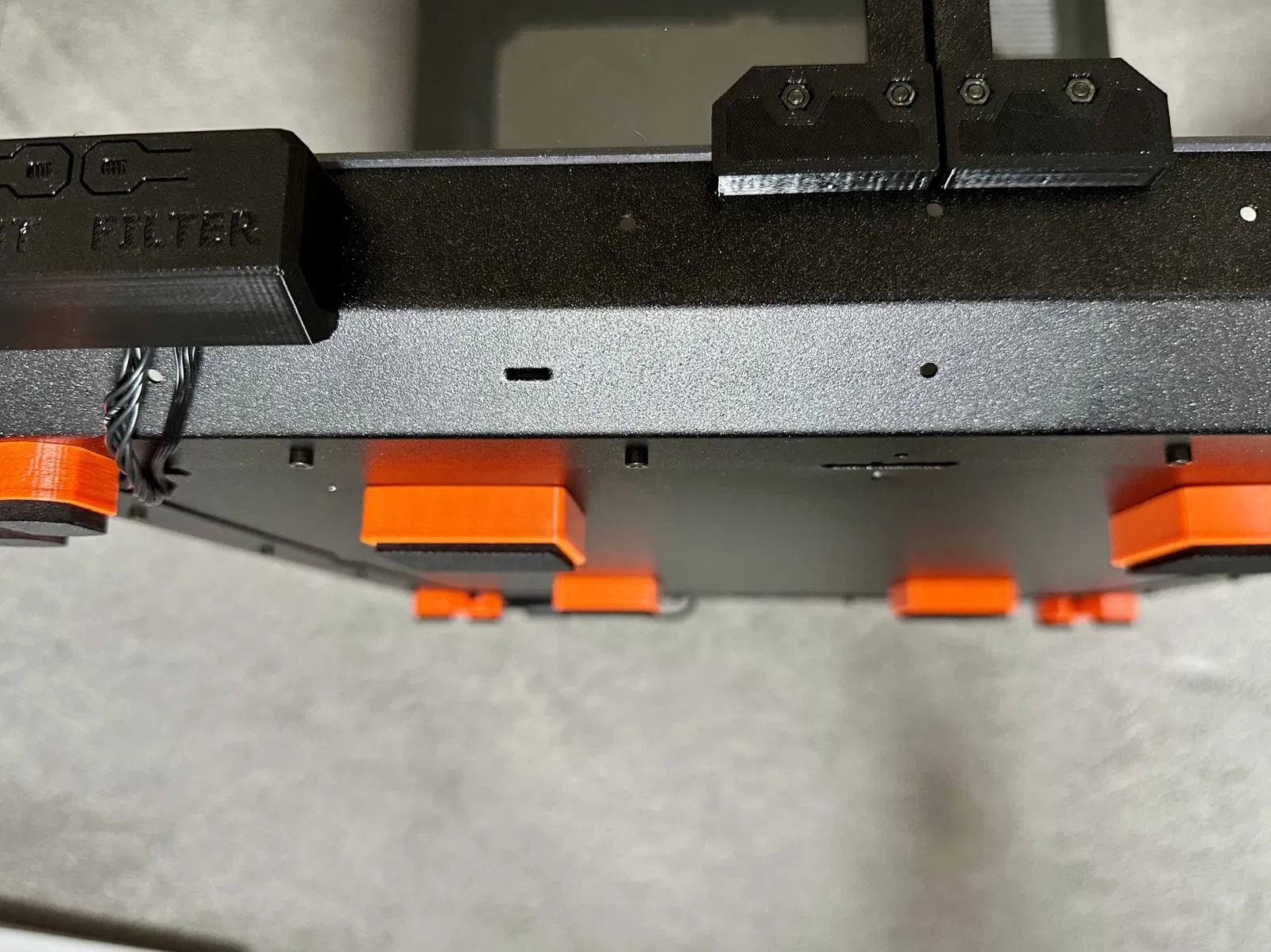 Gỡ bỏ bốn bộ giảm chấn mà bạn đã dùng để giữ máy in của bạn ở vị trí bên trong enclosure. Những chân giữa này được vặn từ dưới lên bằng vít M3x12. Đặt tấm bê tông về phía trước của enclosure.