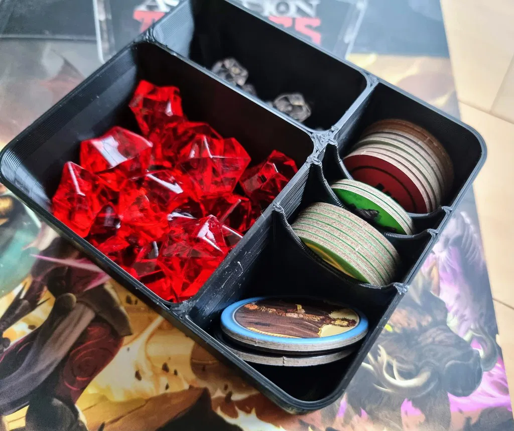 Hộp đựng nhỏ gọn cho board game Ascension Tactics, phiên bản KS. Đặt vừa trên bàn chơi, chứa token vinh quang và marker. Có thể dùng kèm miếng đệm giữ token kho báu trong túi.