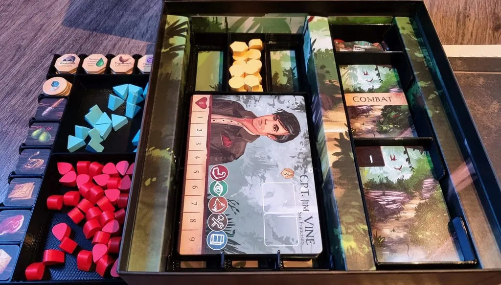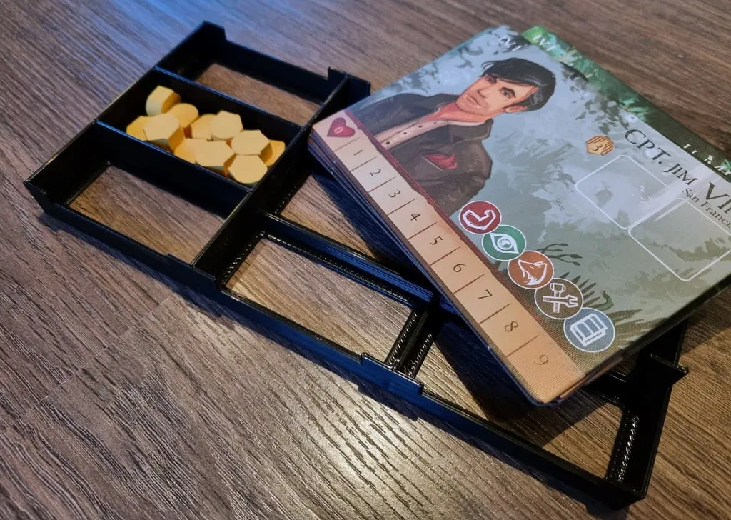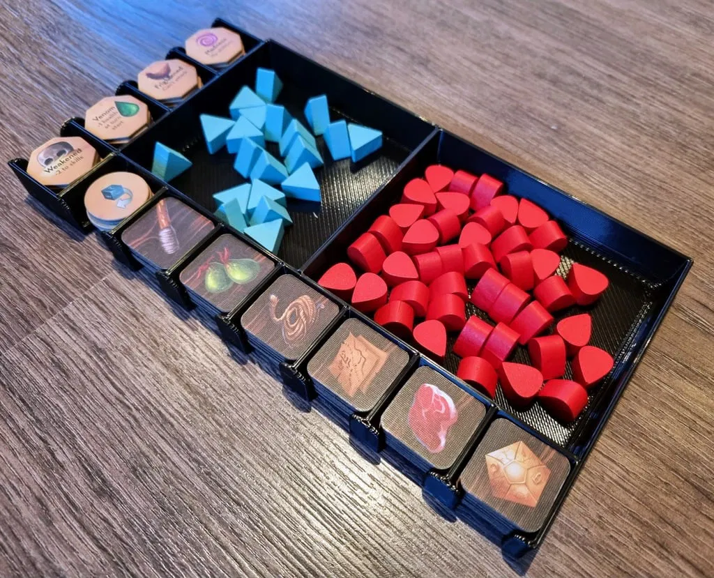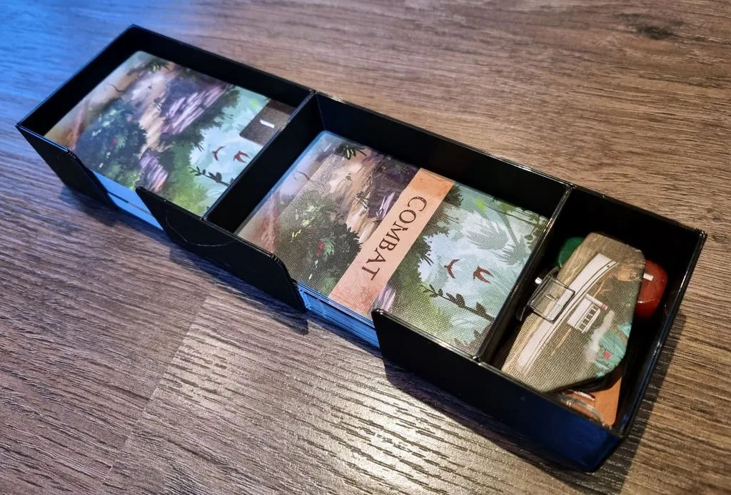Đây là bộ organizer cho board game Sleeping Gods - Primeval Peril. Nó vừa vặn với khay có sẵn của hộp và được thiết kế để đựng vừa các lá bài đã được bọc sleeve (mình đã dùng loại Docsmagic regular).