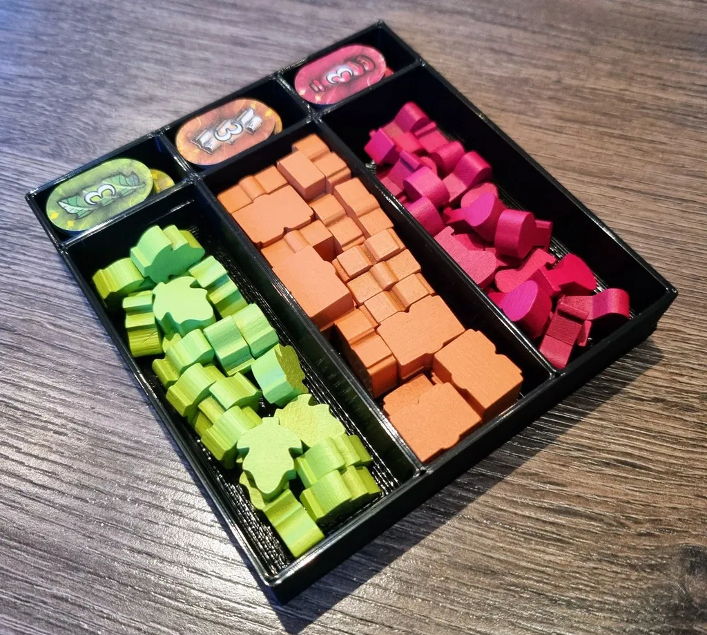 Bộ tổ chức này dành cho boardgame Evenfall, hỗ trợ thẻ bọc và cho phép lưu trữ dọc. Bạn cần in 4 hộp người chơi và 1 cái cho các thành phần còn lại. Thích hợp cho người chơi yêu thích boardgame.