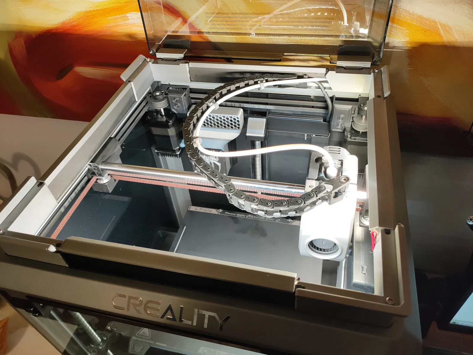 Giá đỡ đơn giản này giúp bạn gắn dải LED dán bằng lực ép vào bộ đệm nắp của máy in Creality K1. Khuyến khích dùng thêm băng keo nhôm và chỉ gắn 2 dải LED để tối ưu ánh sáng và nhiệt độ.