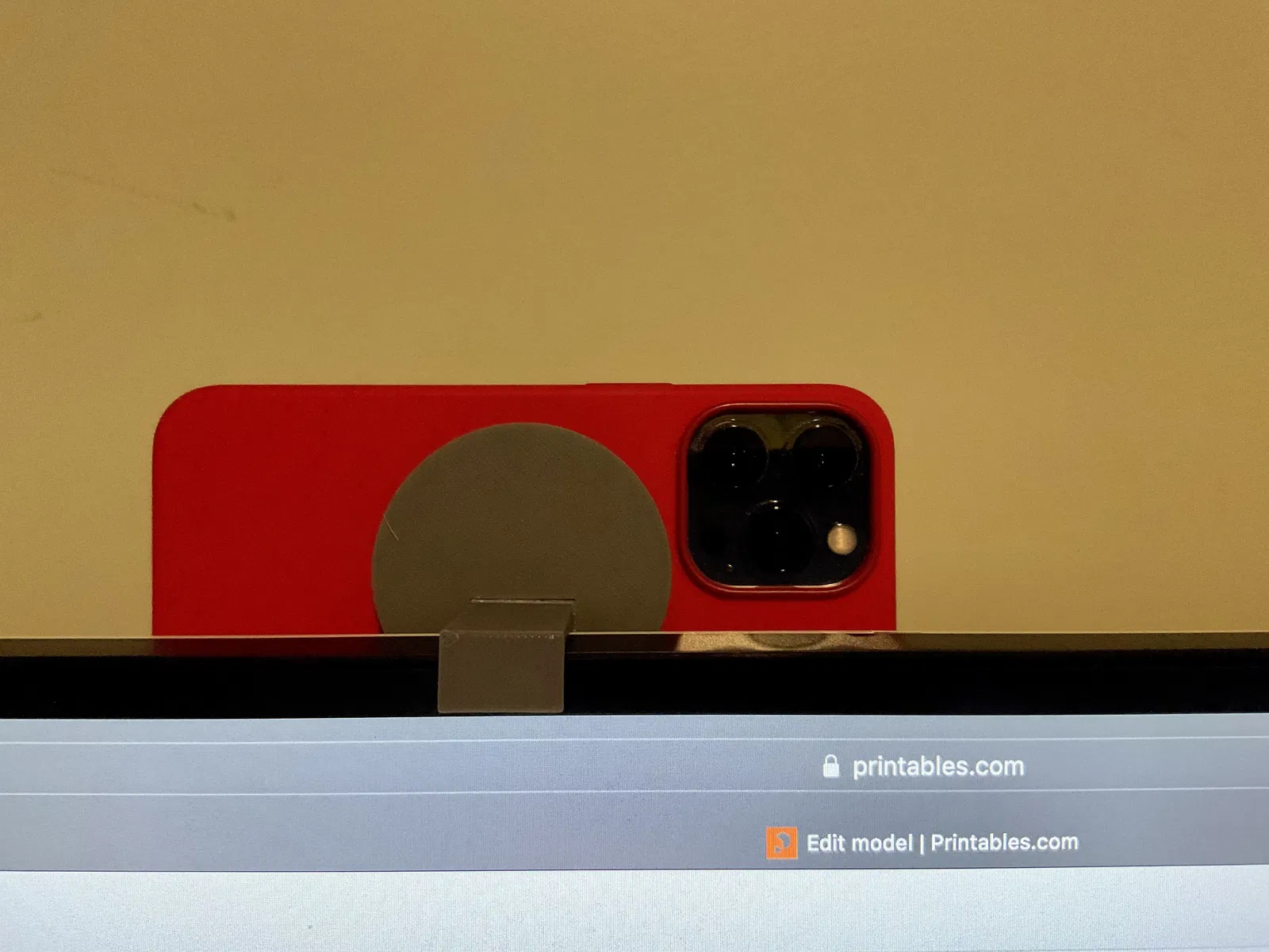 Giá đỡ iPhone đơn giản, sử dụng sạc MagSafe để dễ dàng dùng Continuity Camera trên macOS 13+ và iOS 16.1+. Có tệp .f3d tùy chỉnh, giữ điện thoại luôn sạc khi dùng làm camera. In 2 phần, lắp ráp dễ dàng.