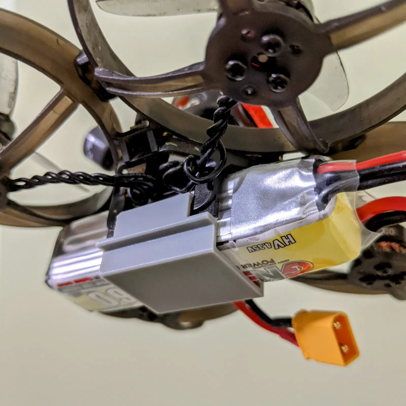 Thiết kế giá đỡ pin độ cho Mobula8, giúp gắn vừa các loại pin 2S dung lượng lớn để bay ngoài trời lâu hơn, hoặc pin 1S khi bay trong nhà mà không cần dây đeo. Phiên bản này đã được gia cố để bền hơn.