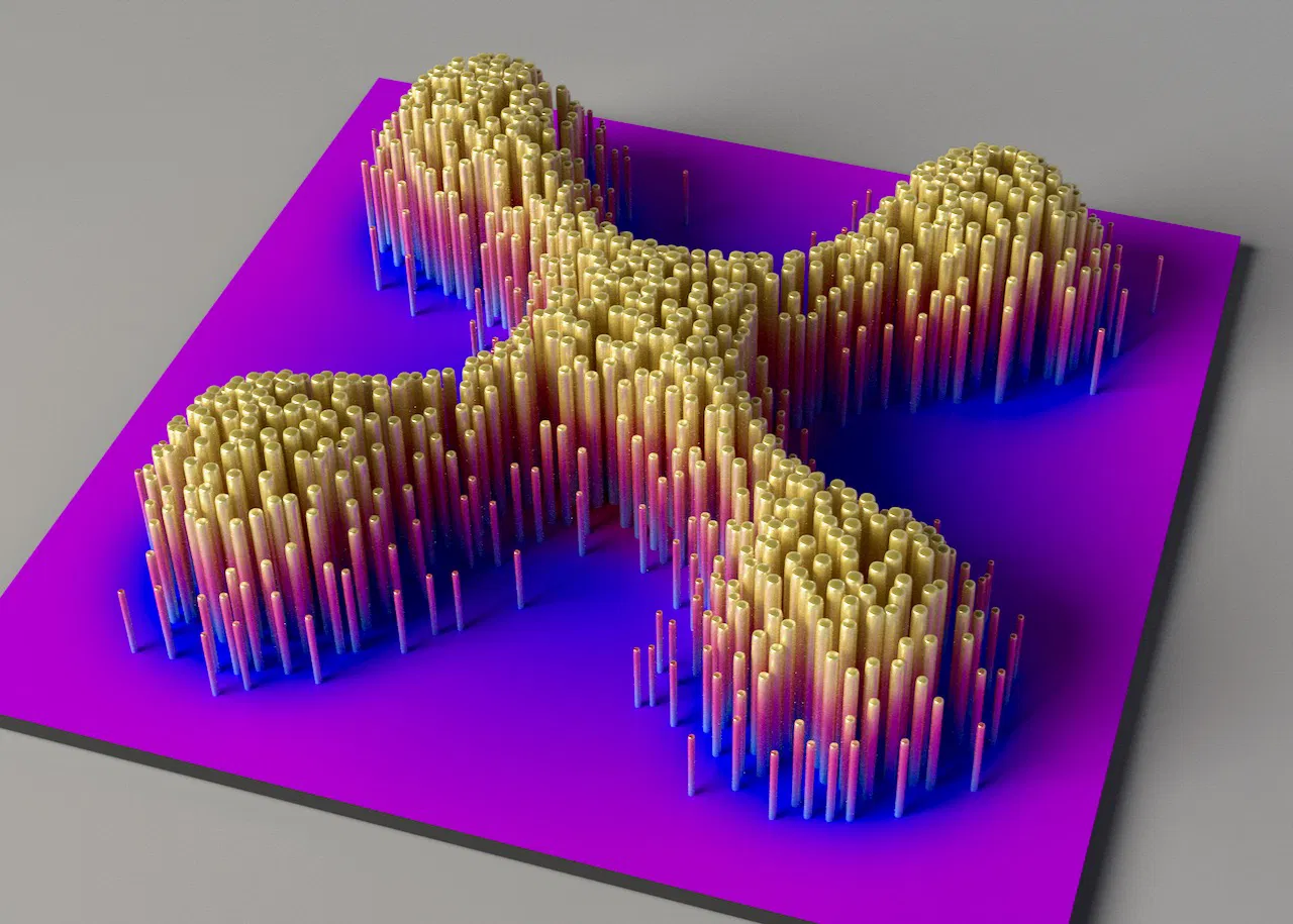 Bản render có áp dụng gradient cho chiều cao của các nốt. Bạn có thể muốn sử dụng sợi filament gradient để đạt được hiệu ứng tương tự.