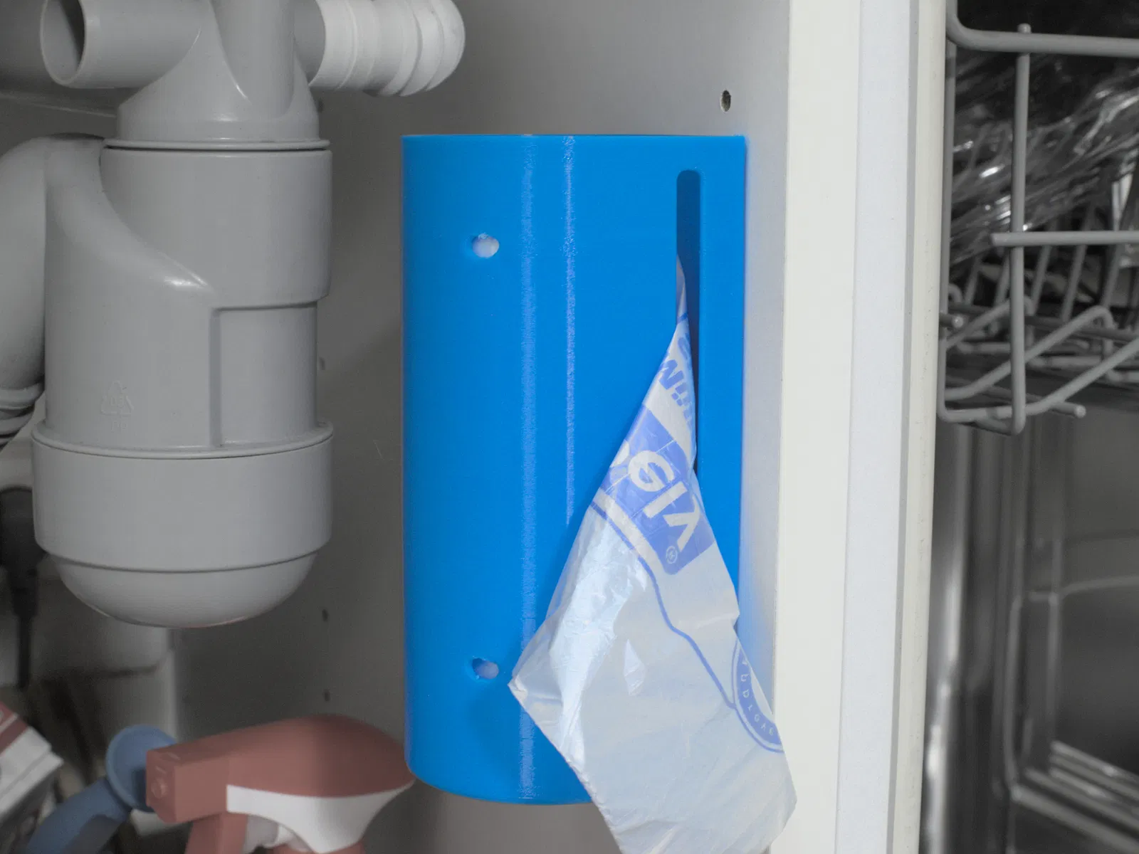 In mẫu giá đựng túi rác này và lắp nó vào bằng cách sử dụng các lỗ (5 mm) và ốc vít có sẵn của tủ bếp!