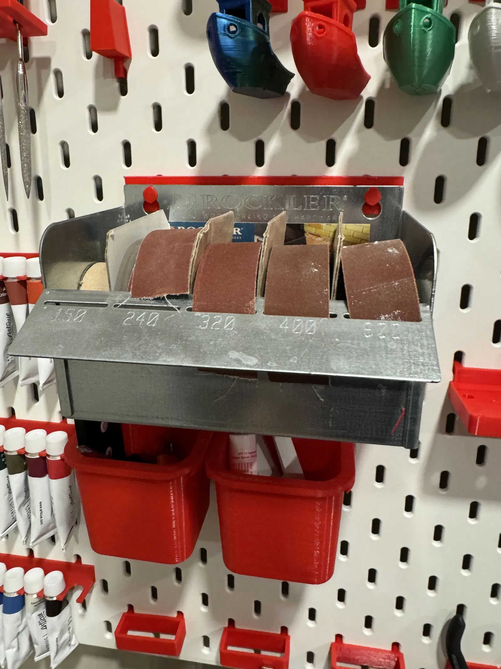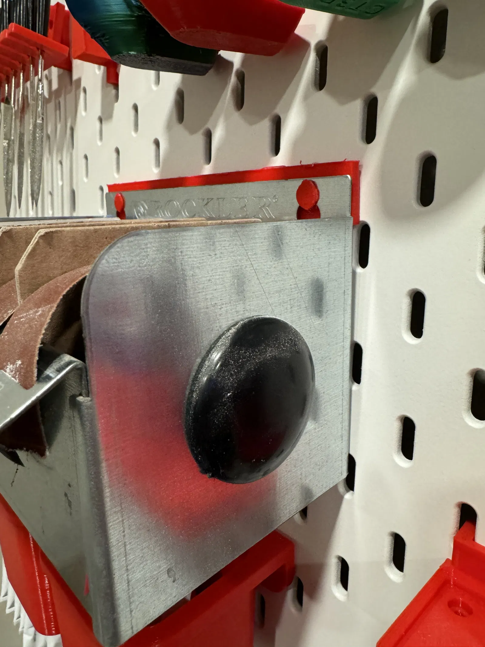 Giá đỡ để gắn Hộp đựng giấy nhám Rockler vào bảng IKEA Skadis.