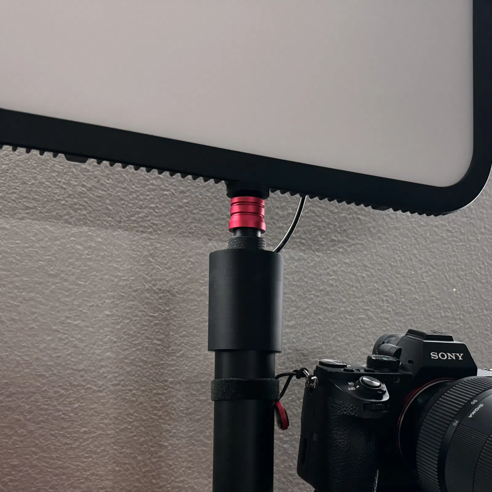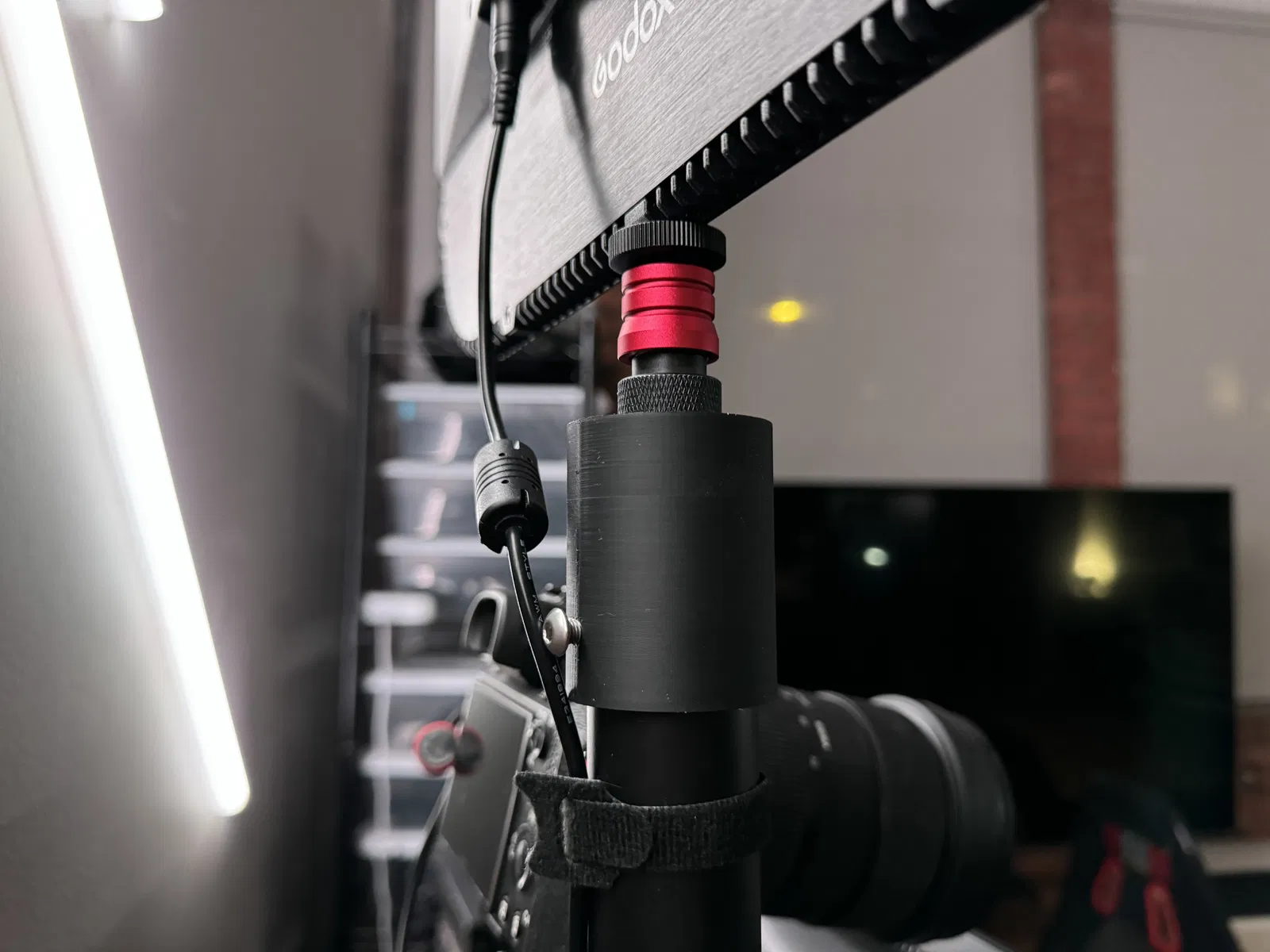 Gắn mọi thứ có ngàm 1/4" vào chân đế màn hình có đường kính ngoài 35.5mm, với nắp chân đế màn hình tích hợp ngàm phụ kiện.