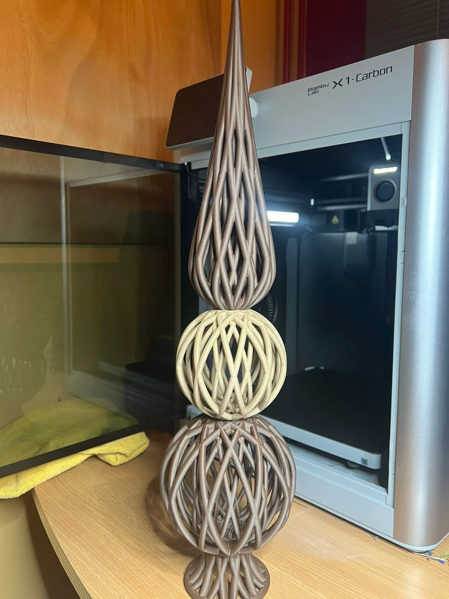 Để trang trí cây nhà mình, tôi đang in vài món đồ trang trí bằng sợi PLA vân gỗ. Sau khi in vài món đồ trang trí đẹp mắt từ các nhà sáng tạo kể trên, chúng tôi muốn có một cái chóp phù hợp.