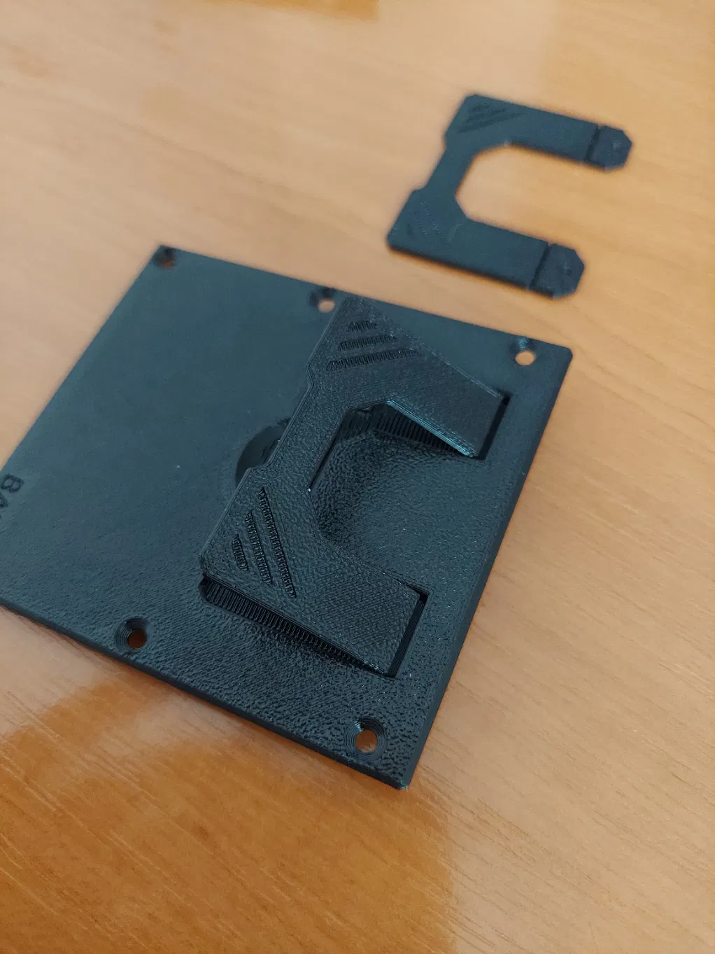 Ngoài ra, còn có tùy chọn nắp có chân đế hoặc không có chân đế. Chân đế là một bộ phận riêng biệt có thể thay thế khi bị hỏng, nó được giữ bằng hai ốc vít, tiếc là phải tháo nắp sau, hoặc nó có thể chỉ cần được lắp vào, sau đó nó có thể rơi ra. Chân đế có thể được gắn chắc chắn vào nhựa, hoặc có thể bật ra, đã thử nhiều lần uốn cong và nó vẫn giữ được. Có phiên bản có lỗ SPI, được che lại ngay cả khi ai đó sửa đổi firmware. Tôi khuyên bạn nên in nó bằng PETG (0.2mm), vì nó chịu được nhiều lần uốn cong.