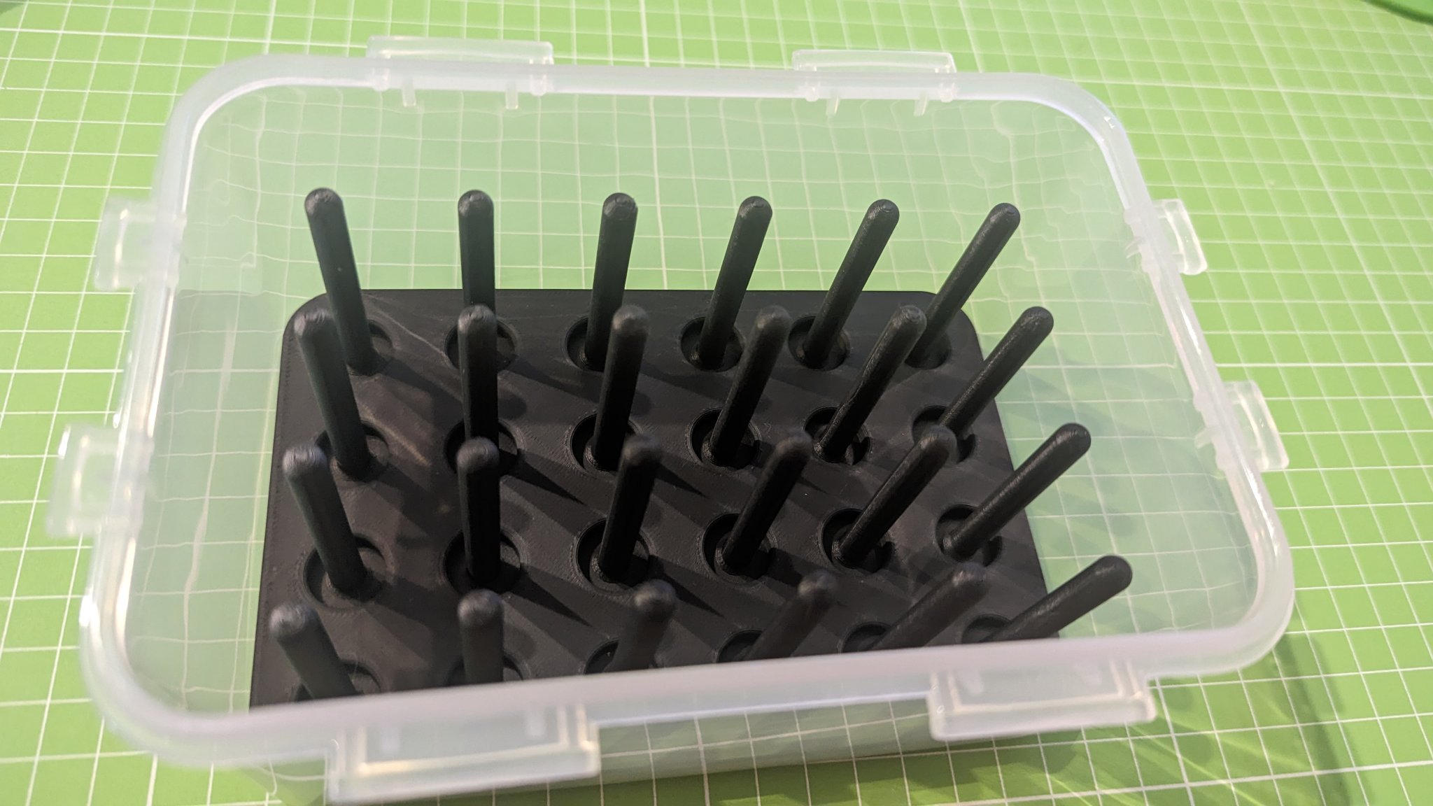 Tôi đã tạo một bộ chèn cho các hộp đựng thực phẩm, chứa hàng tấn trục sợi. Thiết kế dành cho hộp 'Lock & Lock 1.1l', nhưng có thể điều chỉnh dễ dàng trong tệp Fusion 360. Chỉ cần nhập kích thước và số lượng cột.