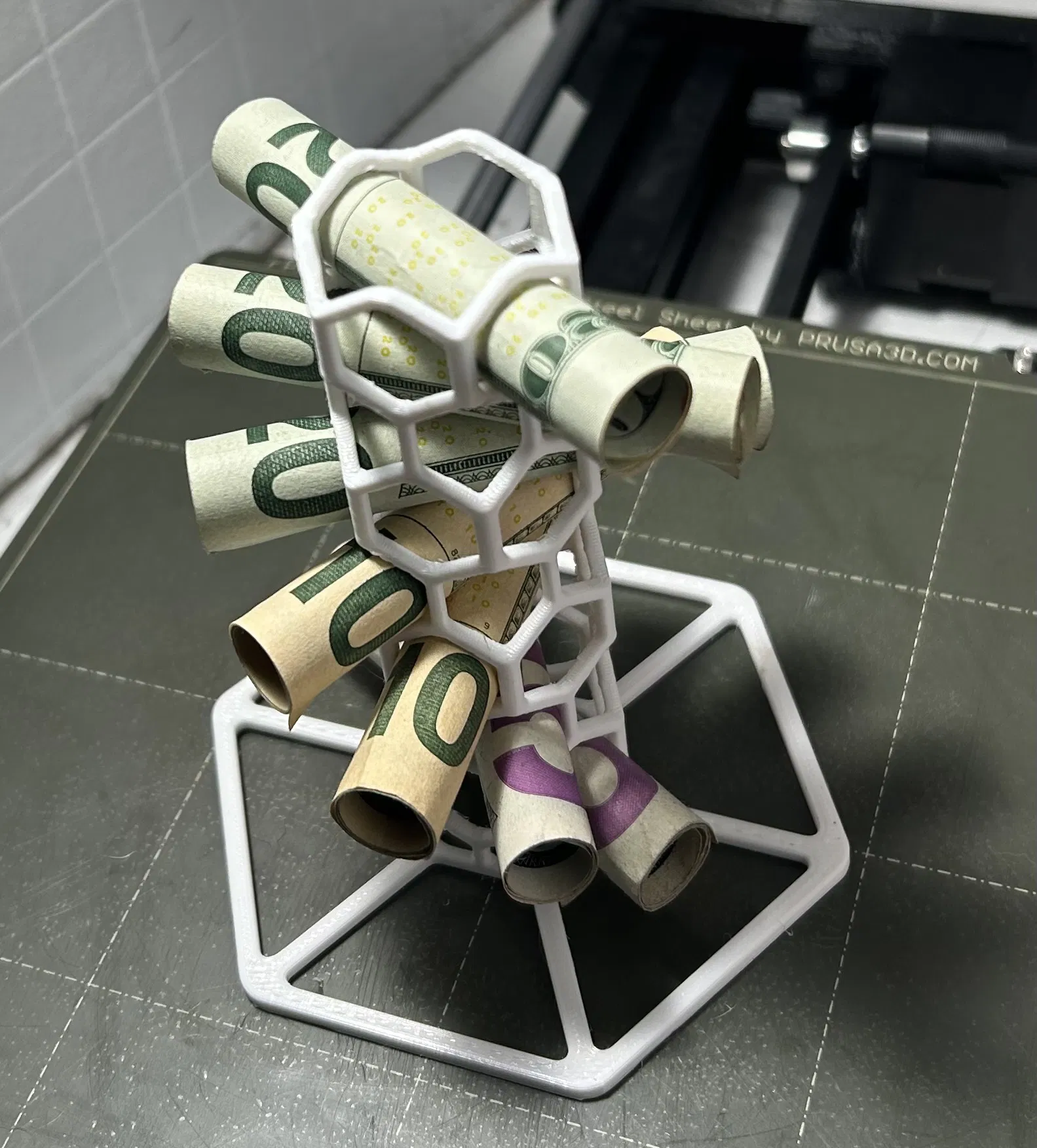 Cột hình lục giác dạng tổ ong để cất tiền cuộn.