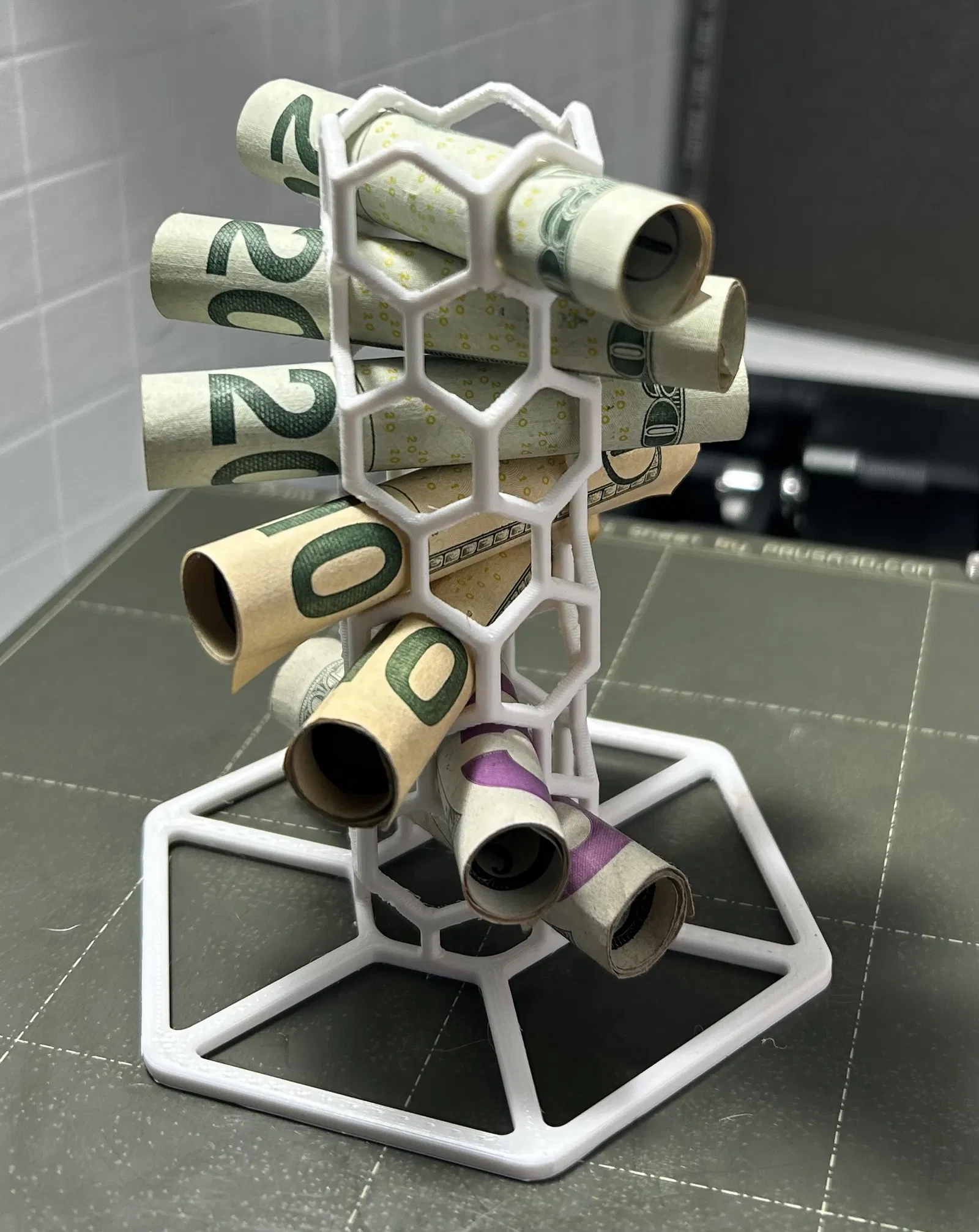Cột hình lục giác dạng tổ ong này là nơi lý tưởng để bạn cất giữ tiền mặt cuộn lại. Thiết kế độc đáo vừa trang trí vừa là một cách thú vị để tiết kiệm.