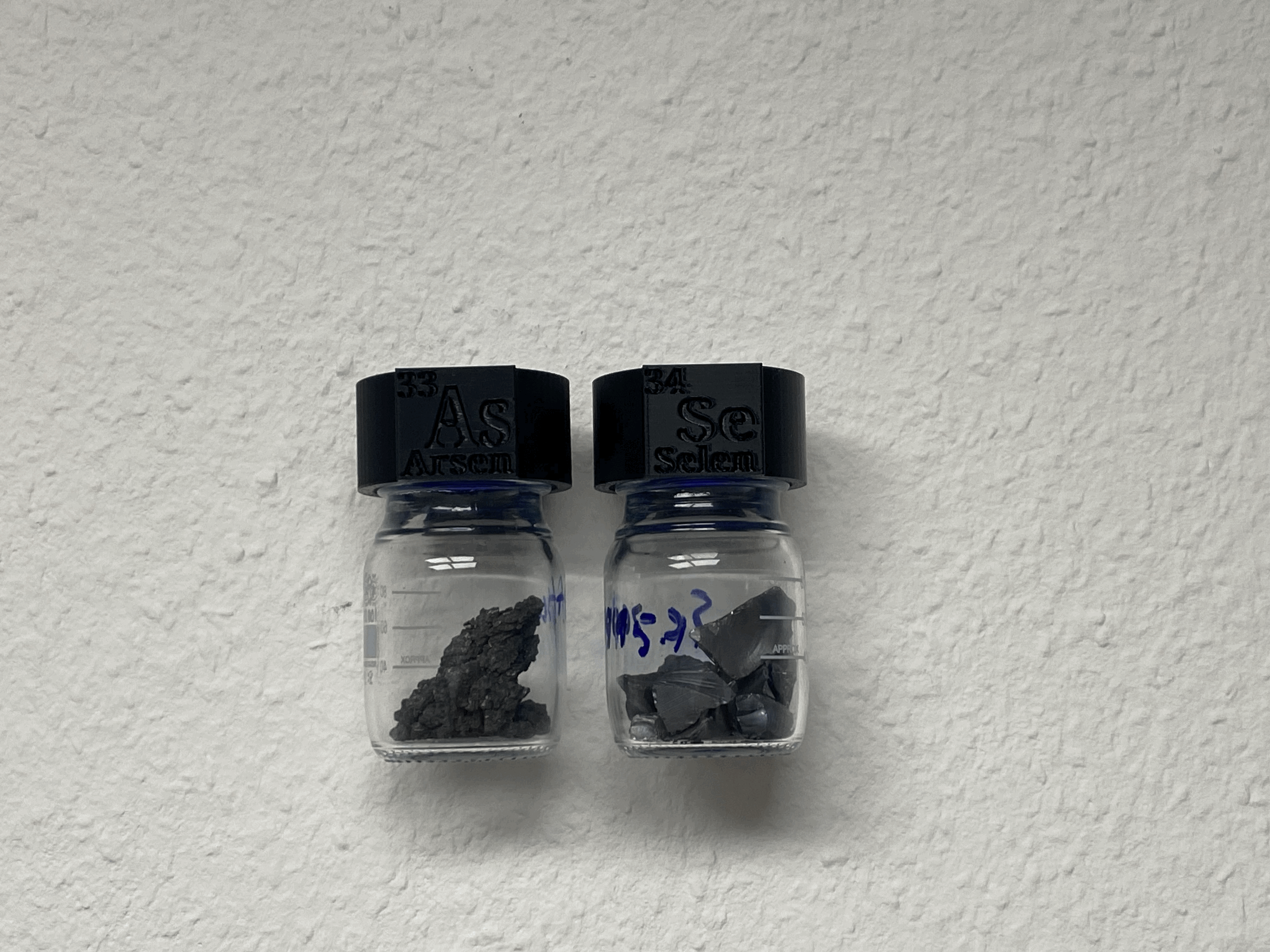 Có hai phiên bản: cao và thấp. Phiên bản cao che toàn bộ nắp vặn của bình thủy tinh và thậm chí còn có tên đầy đủ của nguyên tố (bằng tiếng Đức, hy vọng trong tương lai sẽ có cả tiếng Anh). Phiên bản thấp không che hết nắp vặn của bình. Bạn cứ chọn cái nào bạn thích hơn.