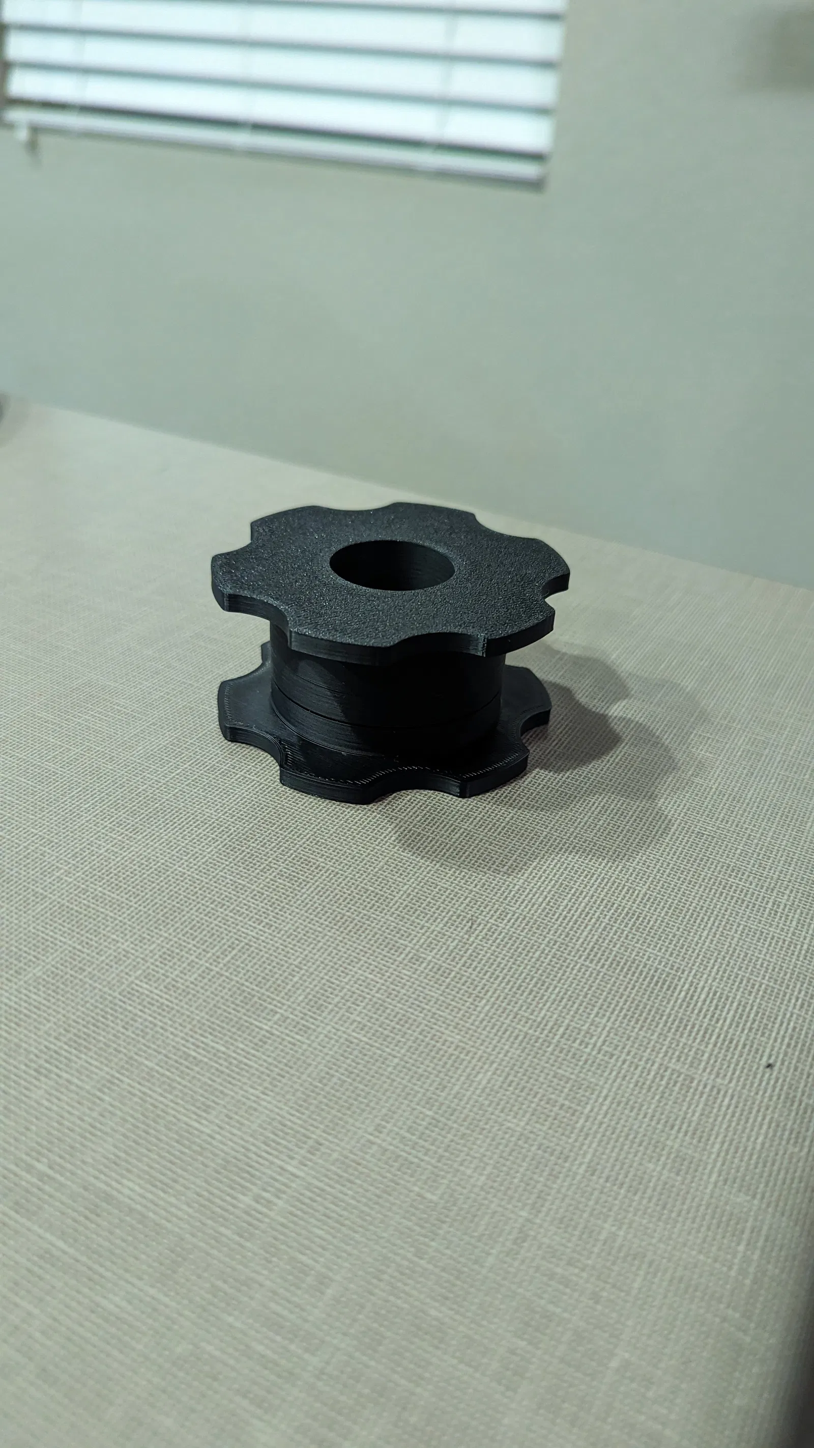 Cần adapter để gắn đĩa tạ barbell (đường kính trong 52.5mm) vào tay cầm tạ đơn (đường kính ngoài 25mm). Có sẵn các mẫu cho đĩa tạ 5lb và 10lb. Ren M40x2. Cài đặt in 3D tiêu chuẩn P1P với độ dày lớp 0.2mm, không cần supports.