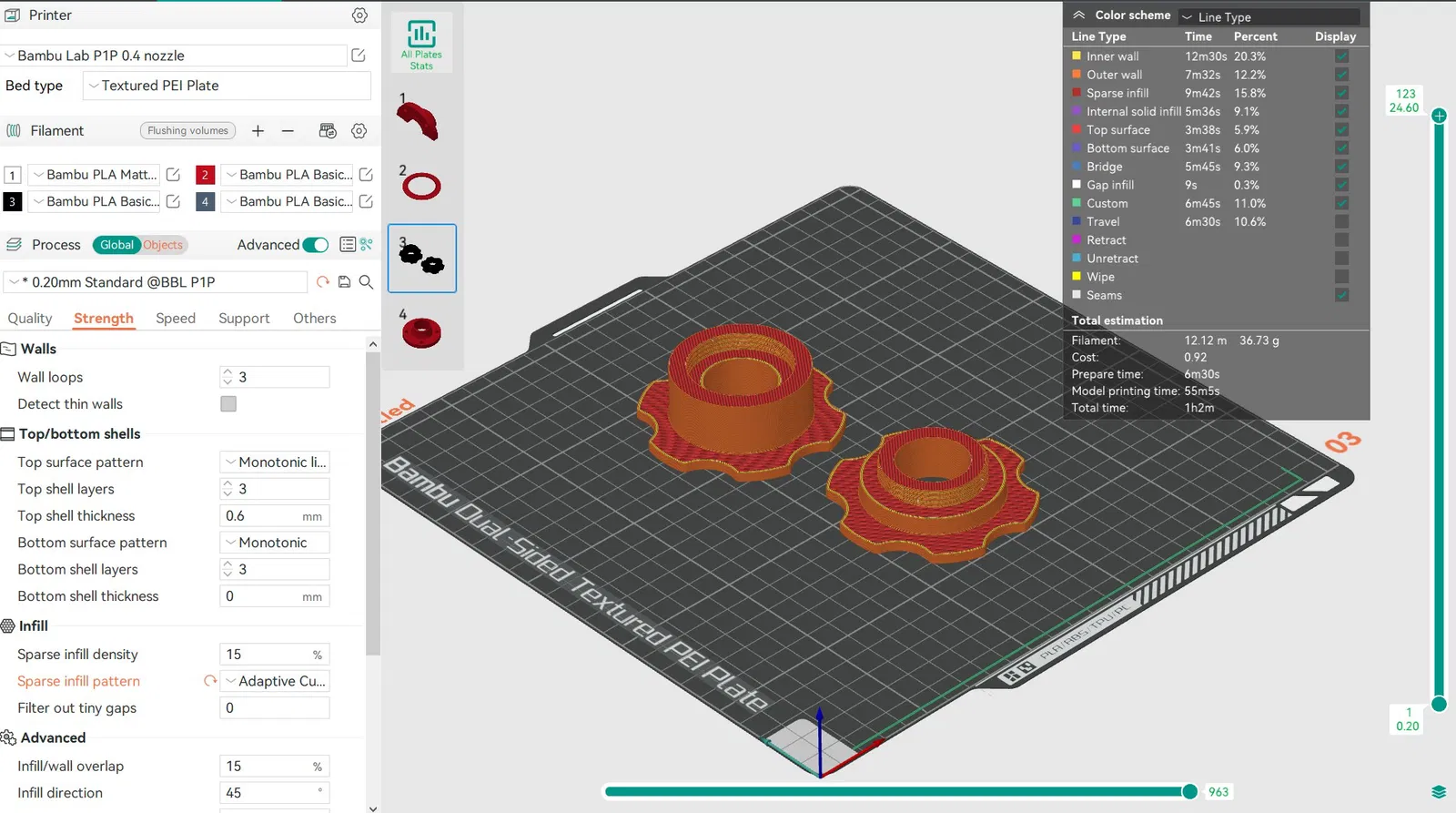 Cài đặt P1P tiêu chuẩn 0.20mm (Adaptive Cubic Infill) Độ dày lớp 0.2mm Không cần hỗ trợ (supports)