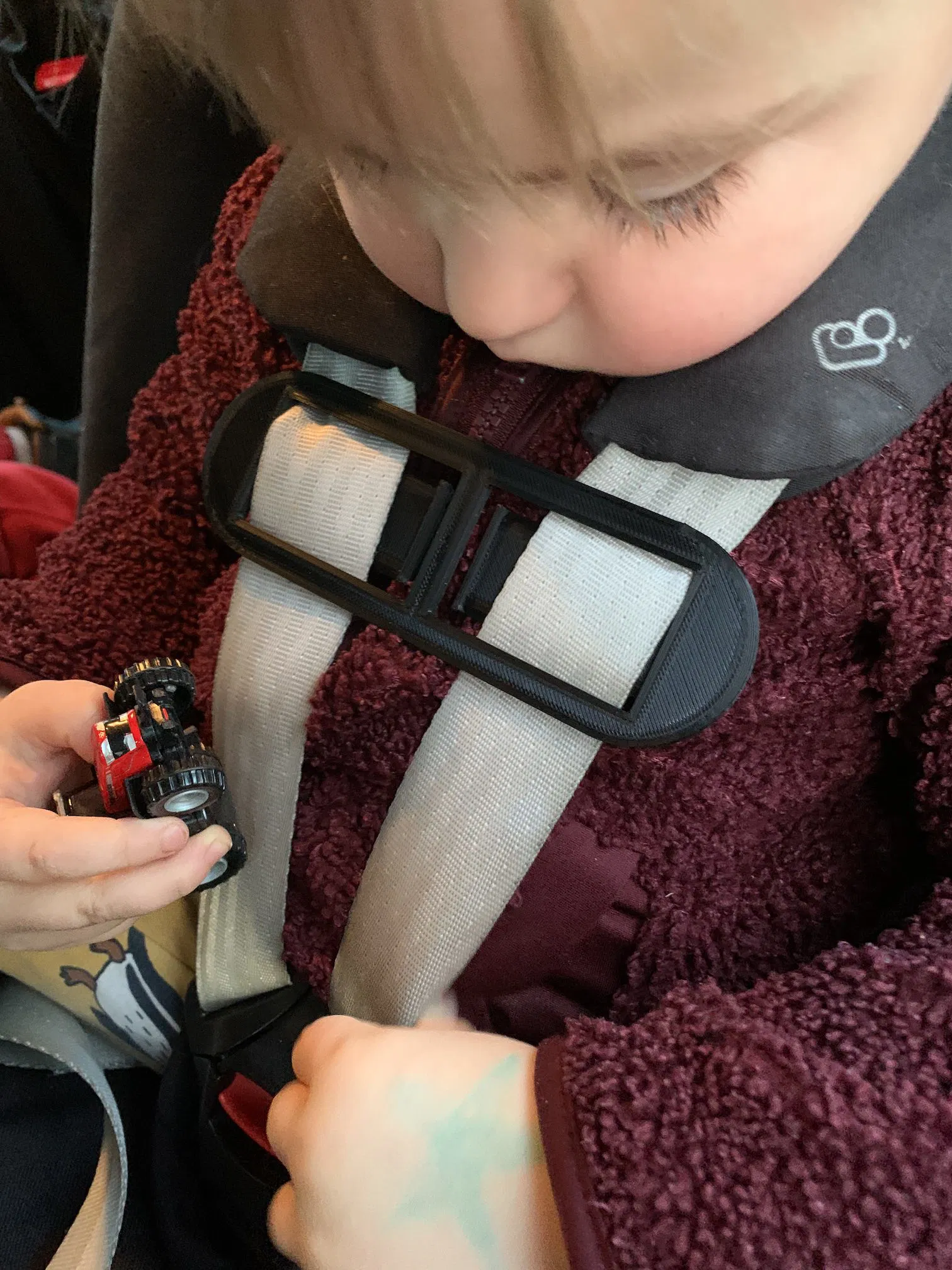 Cái chốt này sẽ giữ các mảnh dây đai của ghế trẻ em lại với nhau để bé không thể luồn tay ra ngoài được. Mô hình được thiết kế không cần hỗ trợ và có thể in ở chiều cao lớp 0.28 mm.
