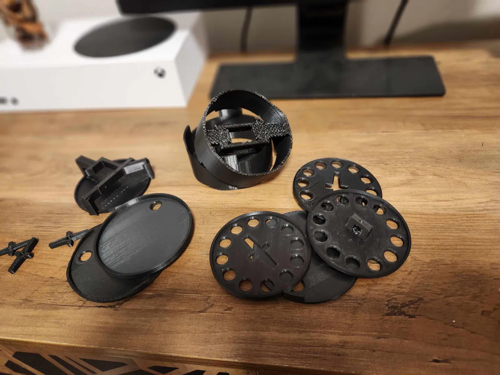 Mình đã sử dụng PLA màu đen cho cái này. Dung sai tổng thể thì ổn, nhưng bạn có thể tăng tỷ lệ Tấm đáy lên 102% nếu thấy nó quá chật. Chỉ cần dùng giá đỡ cho phần thân chính.