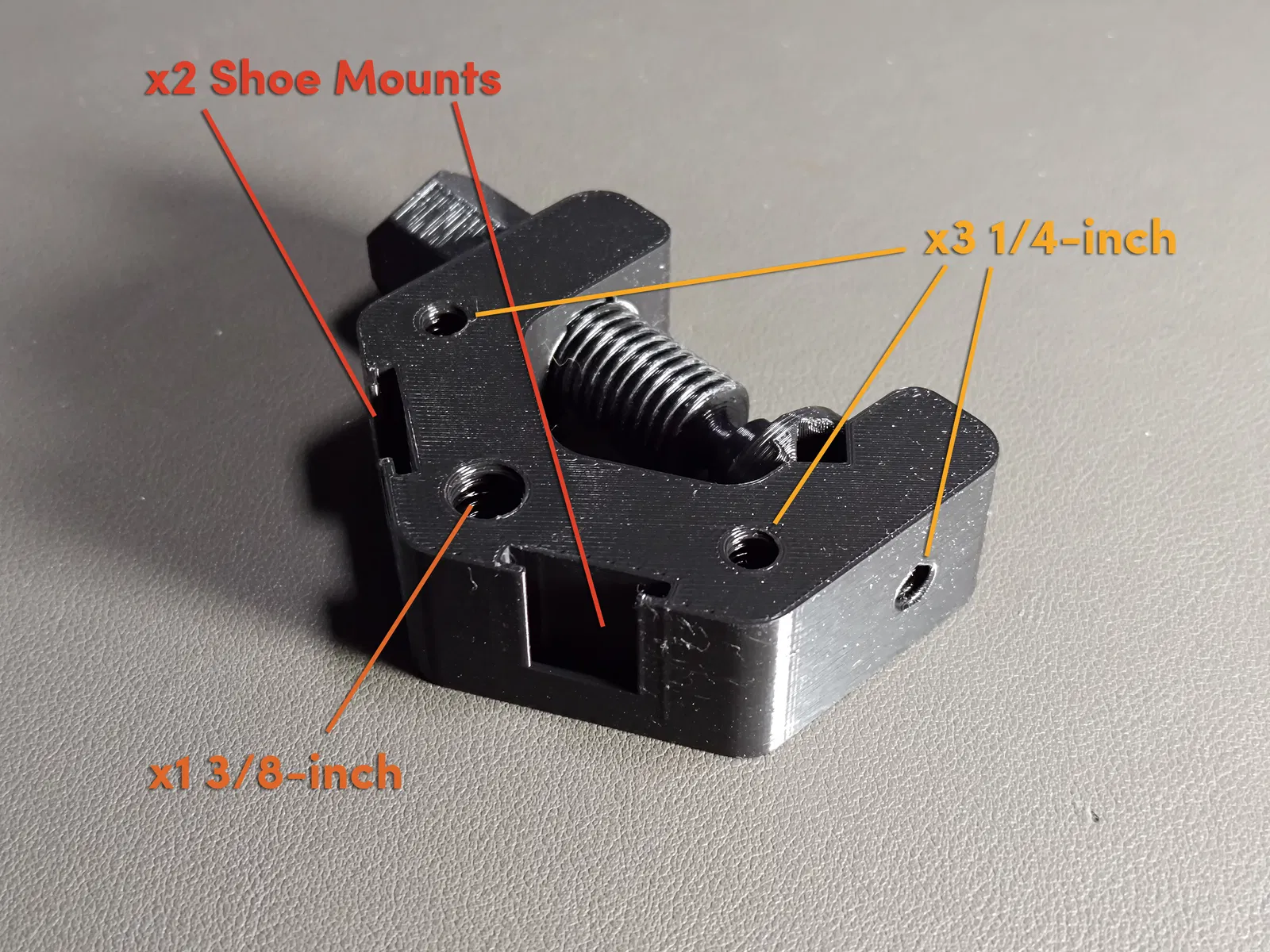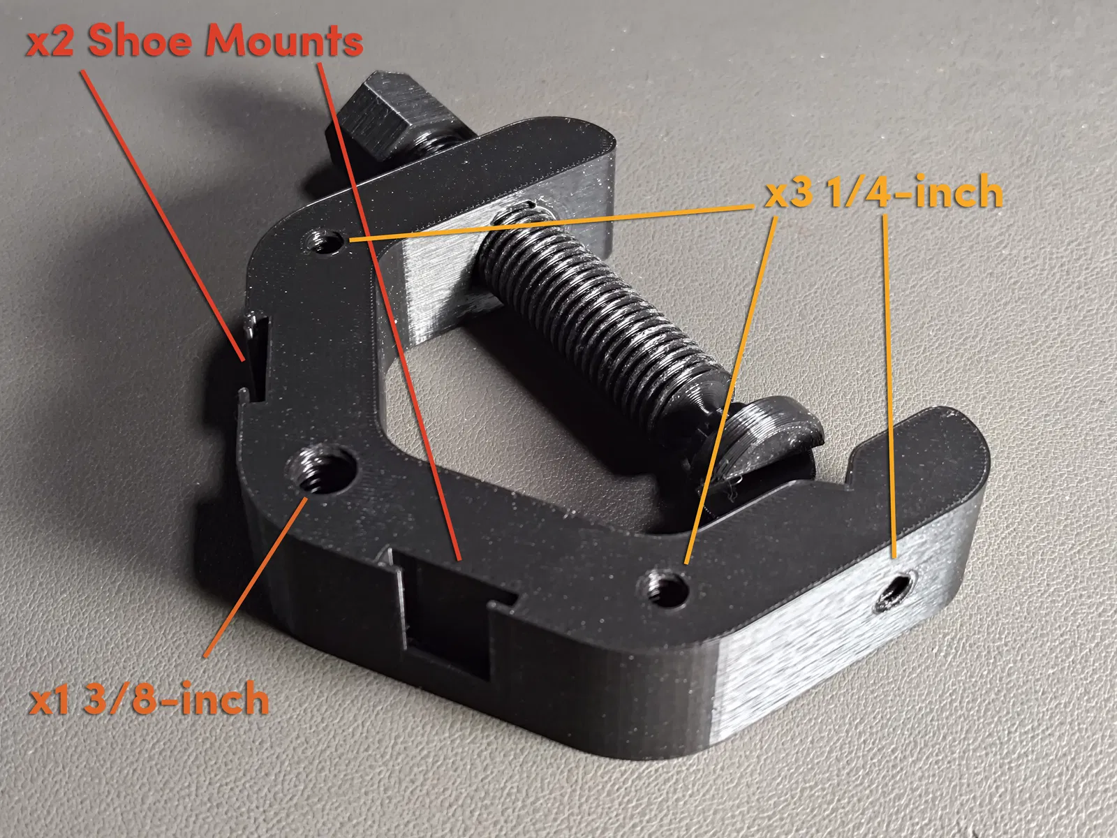 Kẹp đa năng cho nhà làm phim với 3 ren 1/4-inch, 1 ren 3/8-inch và 2 đế gắn phụ kiện. Có rãnh hỗ trợ gắn vật thể tròn/vuông. Hướng dẫn in chi tiết và mẹo sử dụng đi kèm.