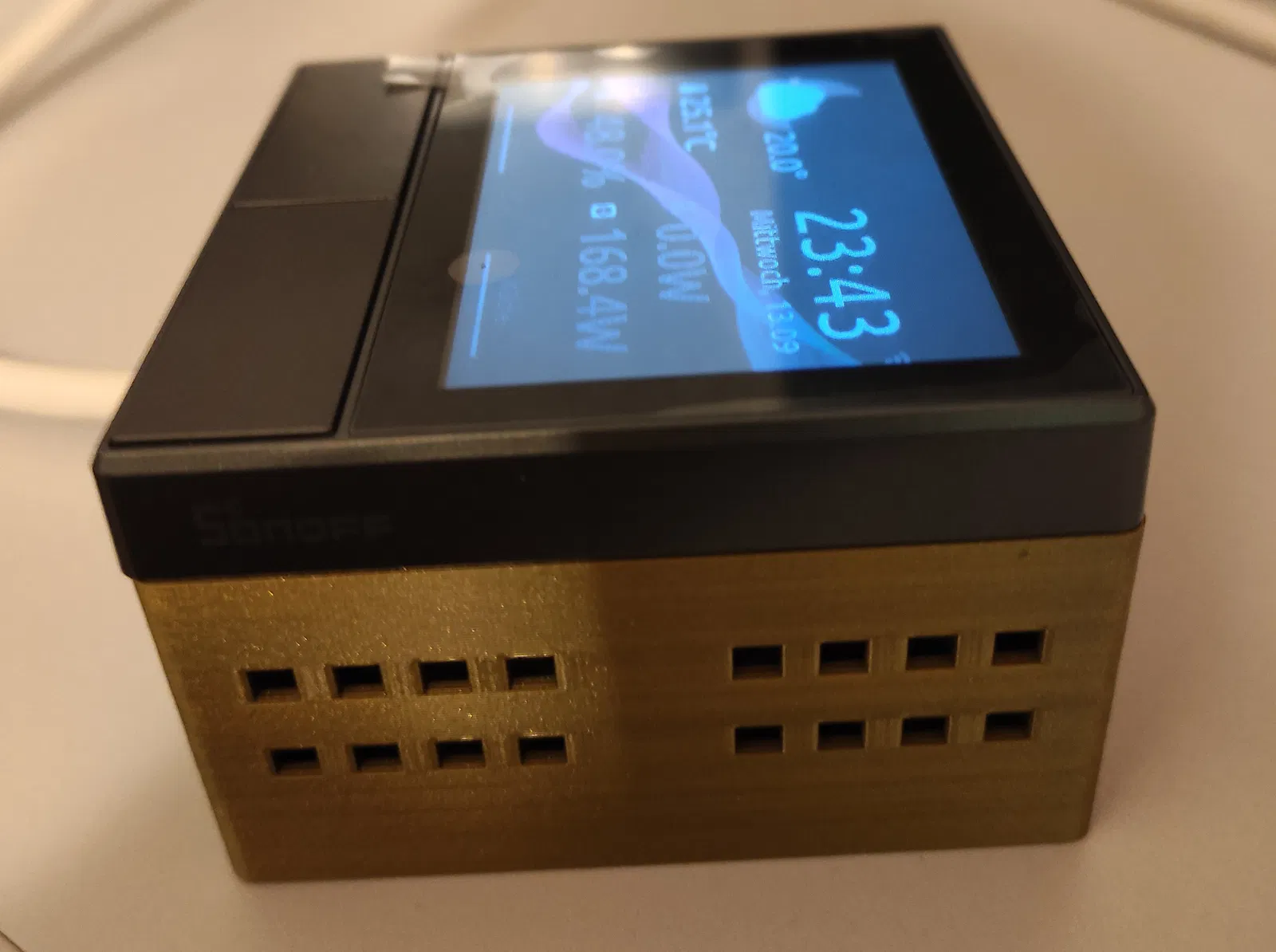 Giá đỡ phiên bản NS-Panel EU. Phần này cho phép bạn gắn cố định NS Panel lên tường. Bề mặt dán keo có vít giúp bạn dễ dàng tháo lắp Power Strip giữ các bộ phận. Mô hình được thiết kế để không cần vật liệu hỗ trợ khi in.