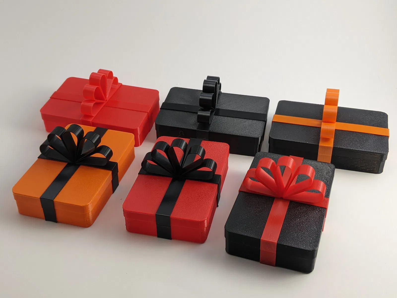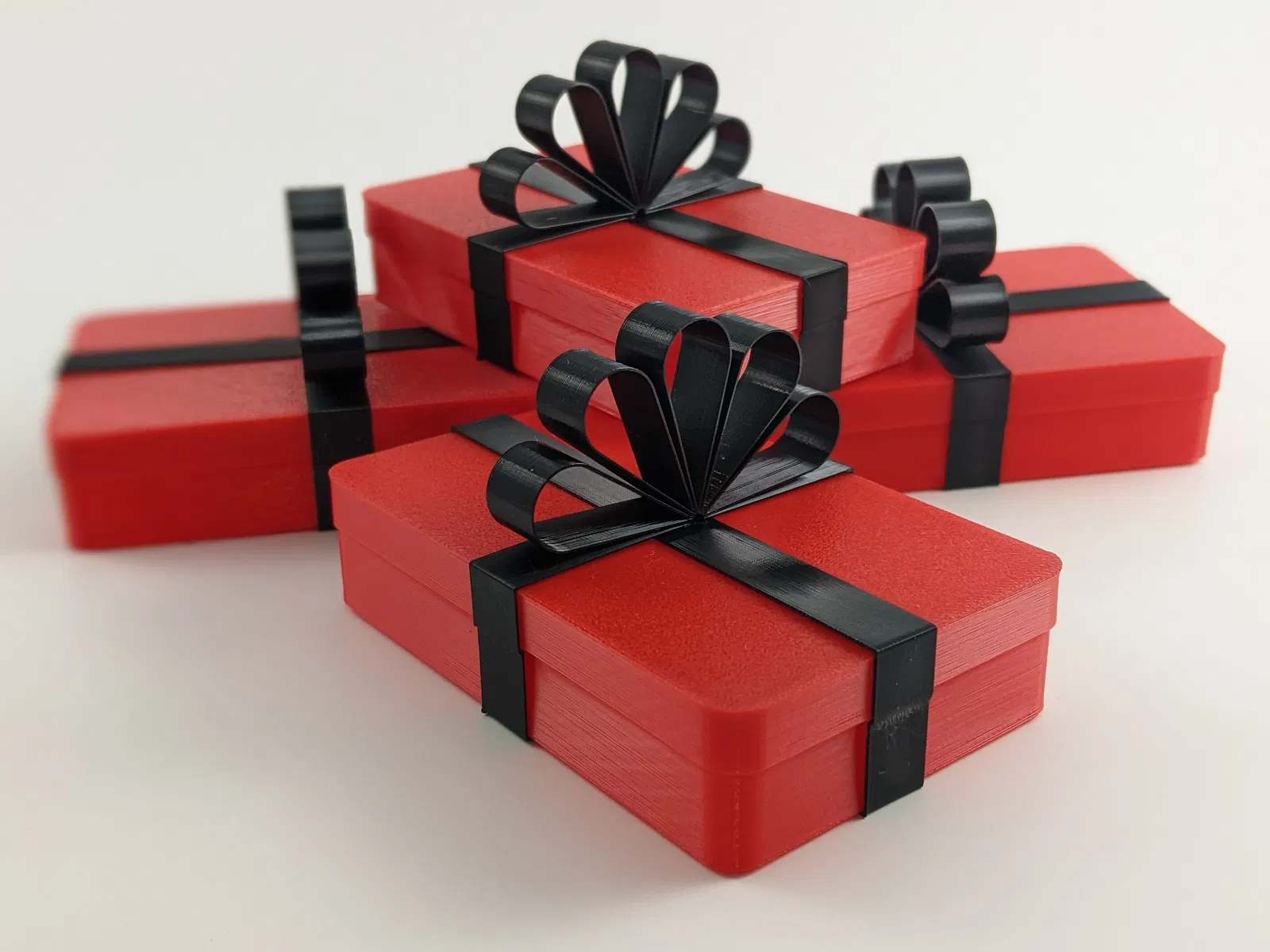 Một chiếc hộp xinh xắn để đựng thẻ quà tặng tiêu chuẩn. Toàn bộ các bộ phận đều in "vase mode", hộp và nắp, dải ruy băng đều có khớp ép chặt để giữ hộp lại với nhau.