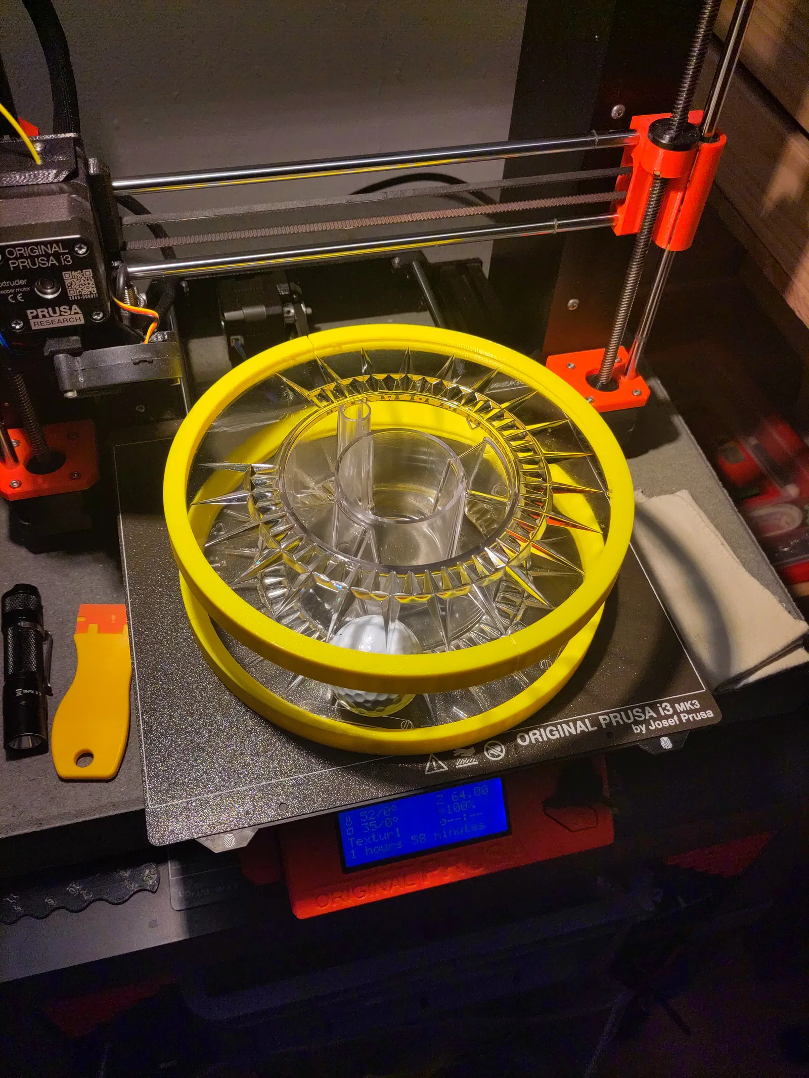 Anh em cần một cái ống trụ đường kính 20cm và một trái banh golf hoặc cái gì bự hơn một chút. In mấy cái miếng ở hai bên rồi ráp lại là xong nha.