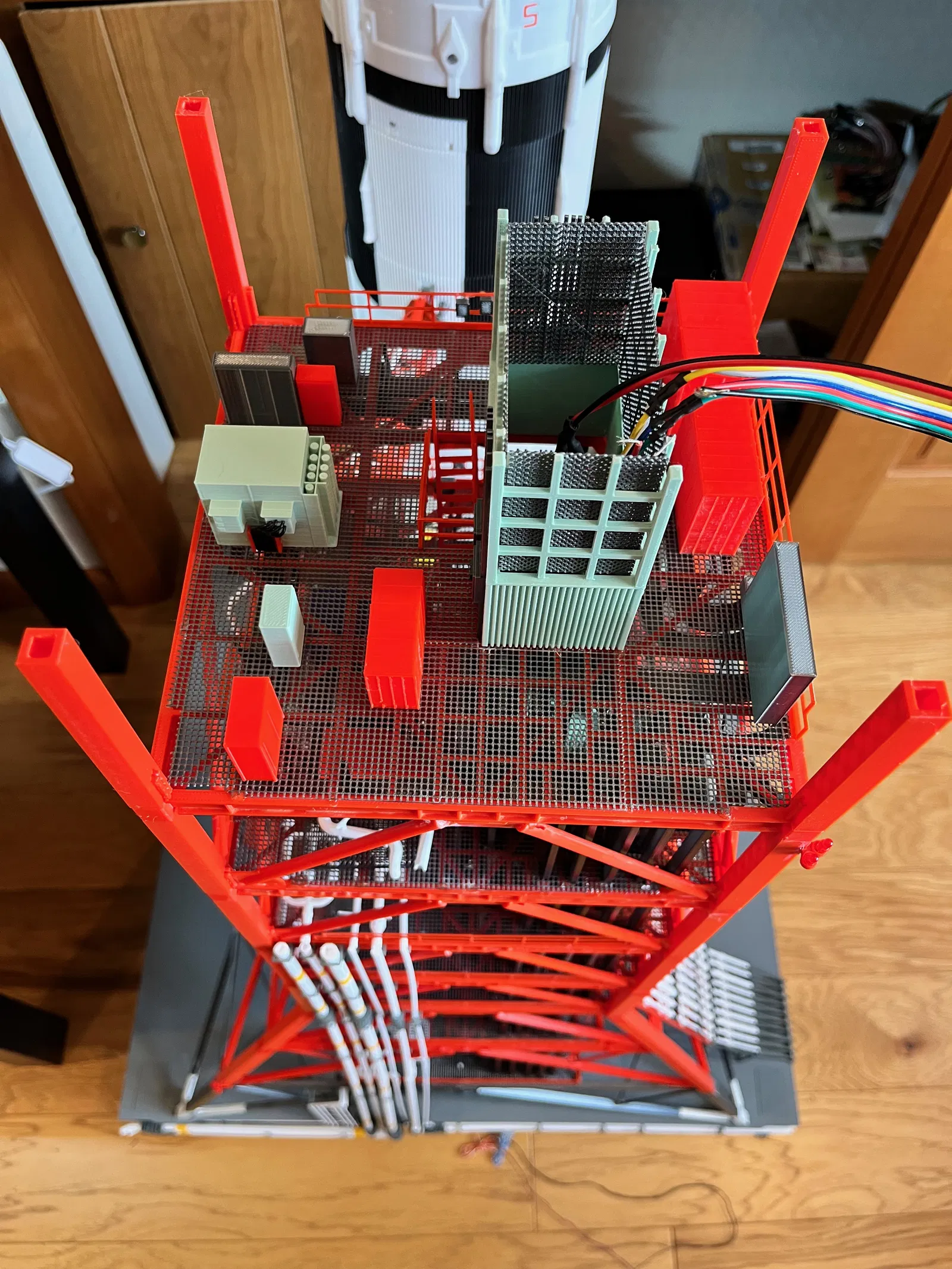 Mô hình này giới thiệu các thiết bị thuộc Tháp Dây Apollo, chuyên dùng để phóng tên lửa Saturn V. Đây là một phần của bộ sưu tập Tháp Dây Apollo, bao gồm các chi tiết thang máy và cầu thang dùng chung cho nhiều tầng.