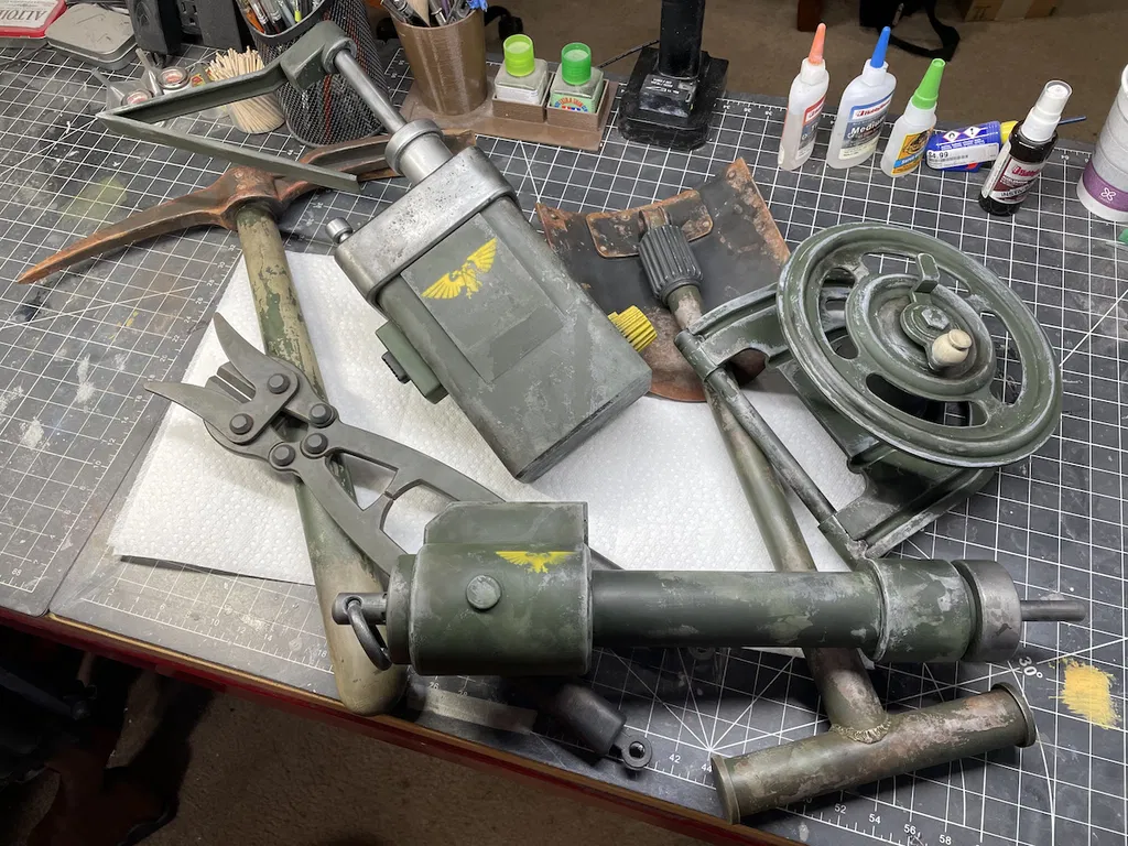 Bộ mô hình Đạo cụ Tỷ lệ thật Bộ Kỹ Sư Chiến Tranh Krieg, gồm Kềm Cắt Dây, Cuốc Chim, Mìn Tan Chảy và nhiều phụ kiện khác. Được thiết kế dựa trên nguồn tham khảo khan hiếm và dụng cụ chiến tranh, đây là món quà tuyệt vời cho fan Warhammer 40K.