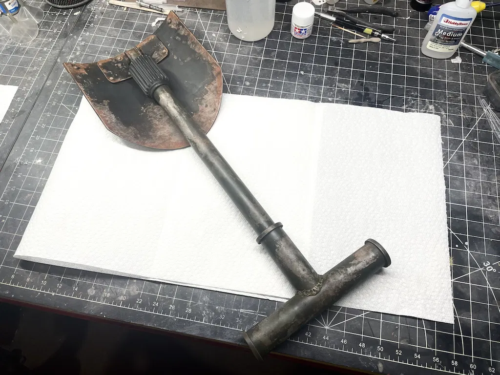 Nói thiệt là nguồn tham khảo cho món này hơi bị ít, nên tao chỉ dựa vào mấy cái ít ỏi có được thôi. Một vài bộ phận thì tao lấy cảm hứng từ mấy dụng cụ chiến hào Thế chiến I, còn mấy cái khác thì dựa trên kinh nghiệm với mấy dụng cụ hiện đại. Tao đã chỉnh kích thước theo mấy nguồn mô hình game để bàn nha.