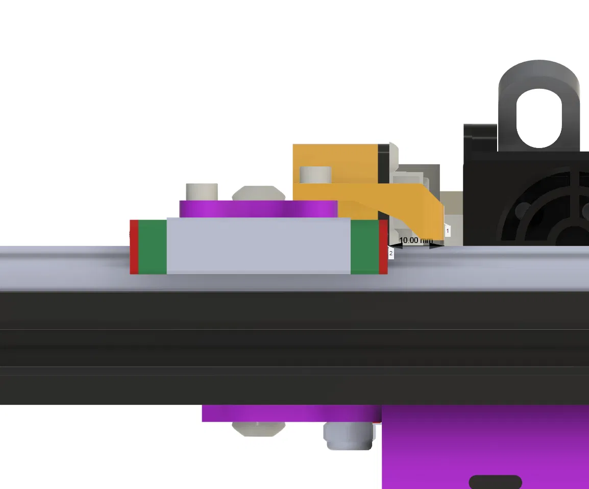 Khắc phục tình trạng khung máy đụng bộ căng dây đai trước khi tới công tắc trục Y. Thiết kế mới tích hợp vào bộ phận gắn công tắc trục X, với cục chặn nhô ra 10mm. Không cần thêm linh kiện, in không support. Kèm file STEP.
