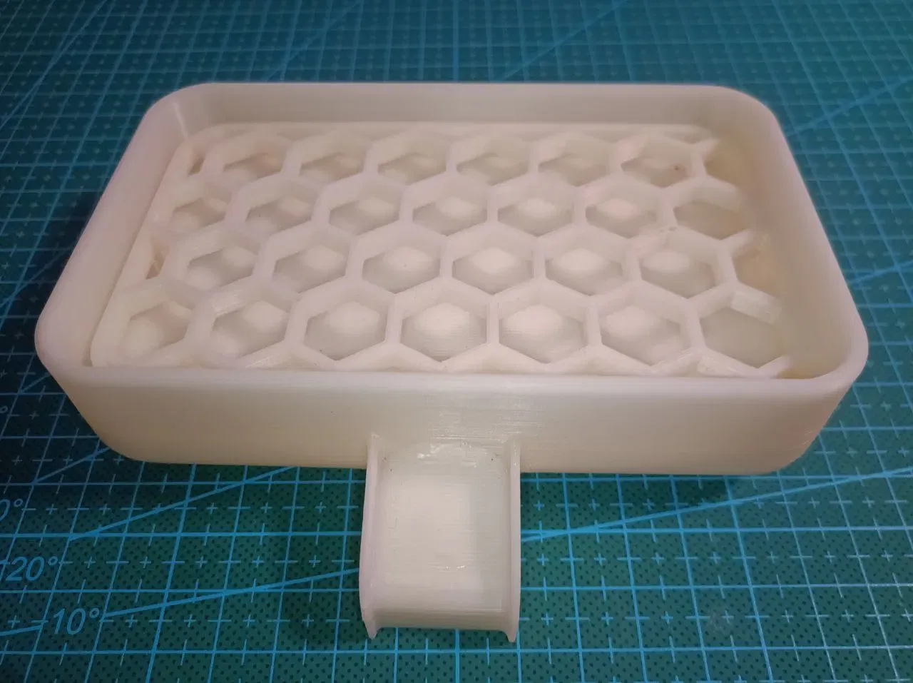 Tôi khuyên nên sử dụng ABS, đầu phun 0.6mm và chiều cao lớp 0.08 cho phần chính và chiều cao lớp 0.2mm cho tấm tổ ong.