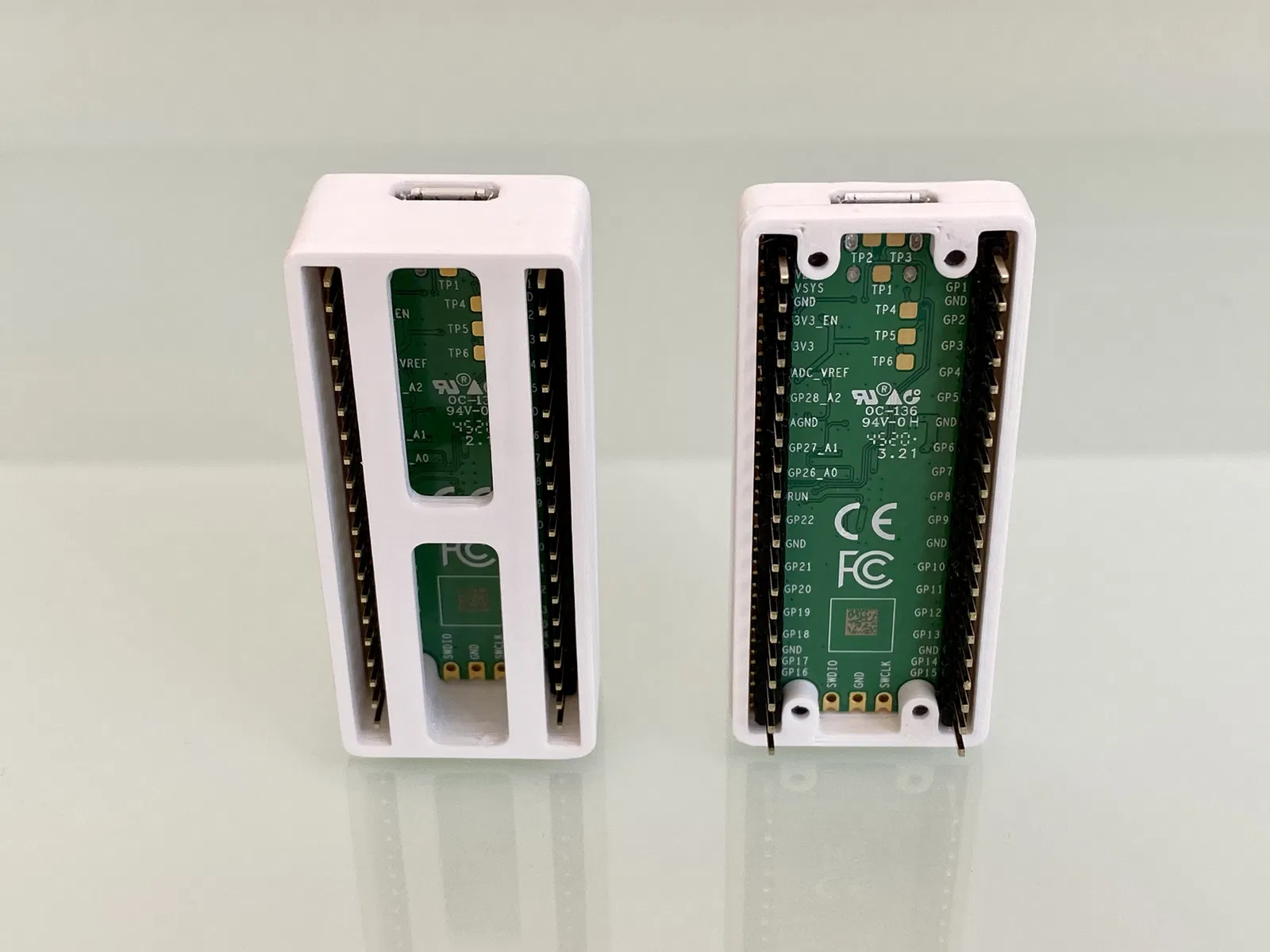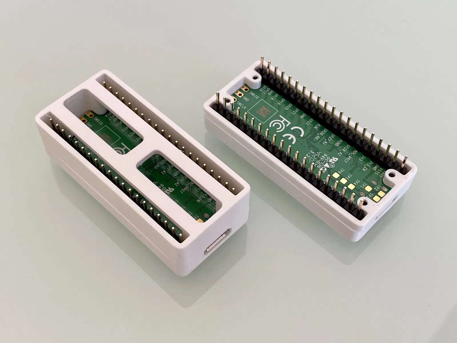 Vỏ case hai mảnh, ôm khít cho Raspberry Pi Pico, với nhiều tùy chọn phần dưới để bạn lựa chọn. Vỏ gồm 2 phần trên và dưới, có thể phối tùy thích. Có 3 loại phần dưới cho bạn chọn: che chân, kín, hoặc tối giản.