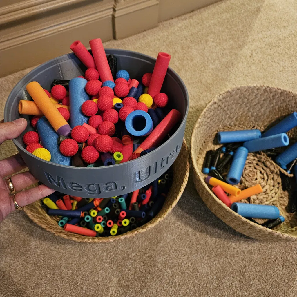 **Cập nhật 23/5/25 - Đã sửa khay phân loại đạn MegaXL cho khổ 240mm. Các khe bị quá rộng. Các khe giờ đã nhỏ hơn đường kính MegaXL. Đã hoàn thành khay phân loại Elite và half dart để tách hai loại đạn xốp này.