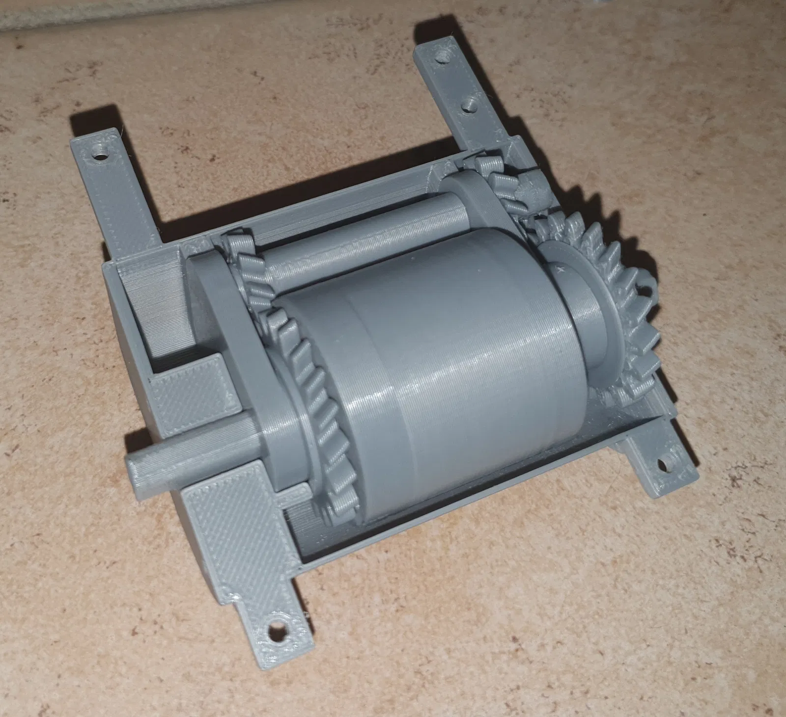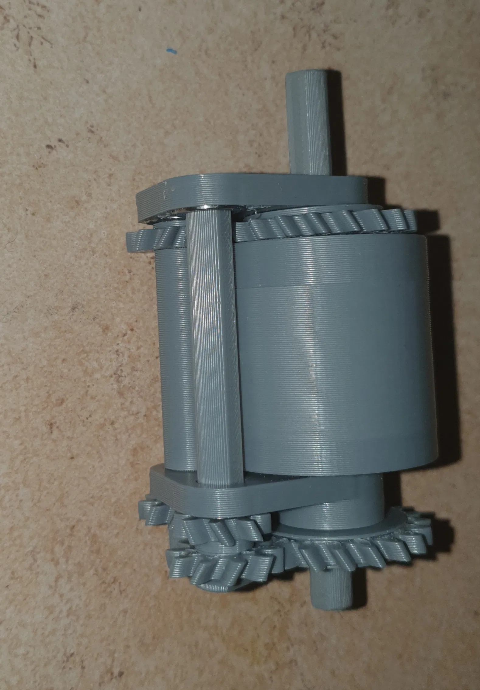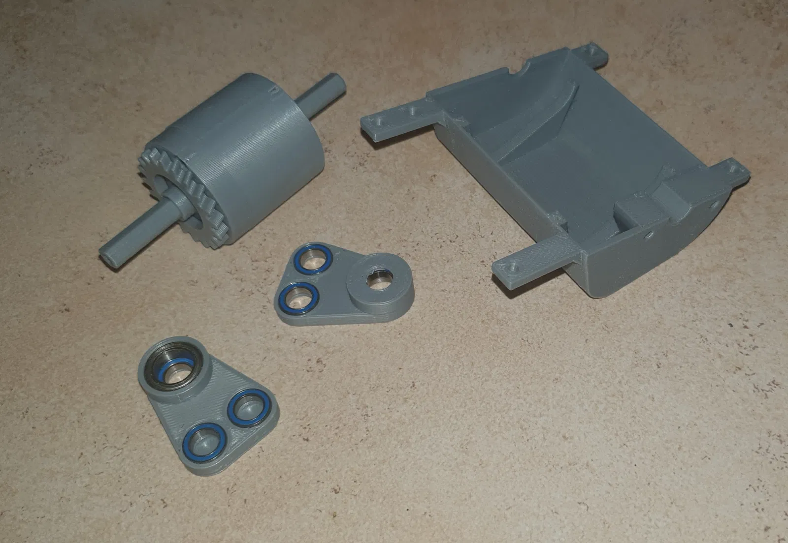 Một số bộ phận được gọi là "in" trong khi những bộ phận khác được gọi là "out" và nếu bạn thắc mắc, "in" là nơi có bánh răng trượt. Có các miếng đệm (SPx) chỉ có thể đặt ở một vị trí duy nhất. Đối với bánh răng trượt, mình đã cung cấp 2 miếng đệm. Nhưng mình chỉ dùng một vì dung sai chung của bản in. Nếu bạn cần chọn, hãy đặt ít nhất một miếng giữa vỏ và bánh răng trượt.