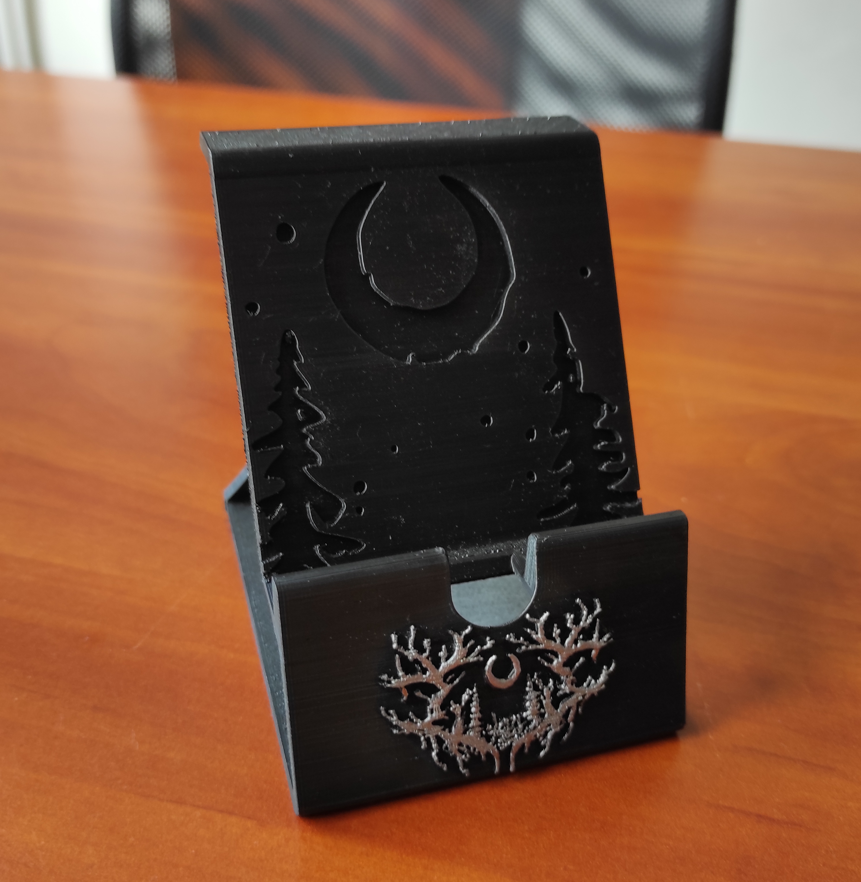 Giá đỡ điện thoại được thiết kế lấy cảm hứng từ ban nhạc deathcore Lorna Shore. Được làm từ nhựa PLA, cần dùng support tùy theo hướng in. Thông số in chi tiết được cung cấp.
