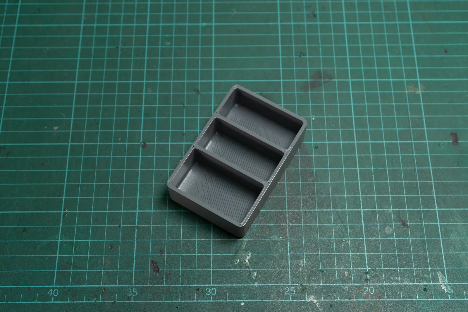 Hộp chia ngăn dạng rãnh đơn giản, khớp hoàn hảo với khay IKEA Skadis. Rãnh vừa khít với bộ sạc pin máy ảnh XTAR SN4/VN2 và đế sạc dự phòng, giúp bạn sắp xếp gọn gàng.