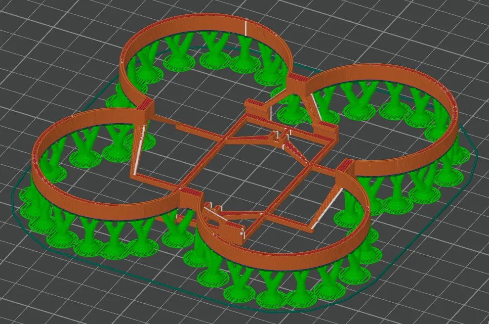Thiết kế này giúp bảo vệ tường nhà khi chuyển đổi bay trong nhà và ngoài trời mà không cần dụng cụ. Cần support cho các vòng tròn, sử dụng organic tree supports trong Orca Slicer. Nặng khoảng 10g.