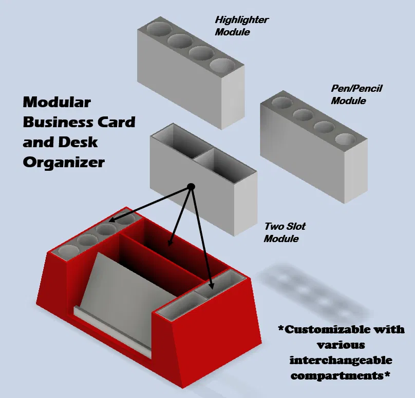 Cái khay đựng danh thiếp này còn có thể dùng làm chỗ sắp xếp bàn làm việc theo kiểu module, tùy chỉnh theo ý bạn! Bạn có thể in thêm các loại ngăn khác nhau với màu sắc tùy thích và dễ dàng thay đổi. Có các loại ngăn bút, bút dạ quang, và ngăn đôi.