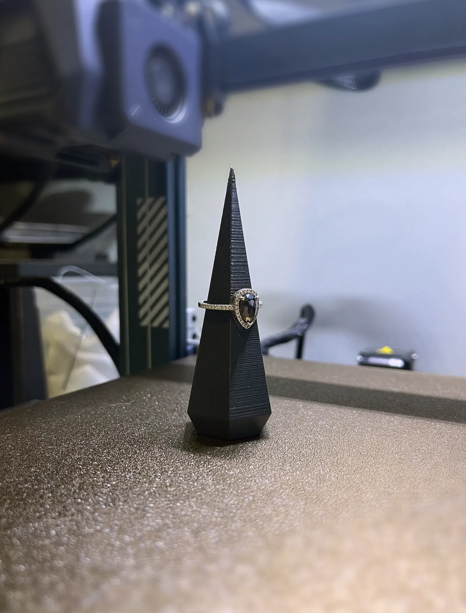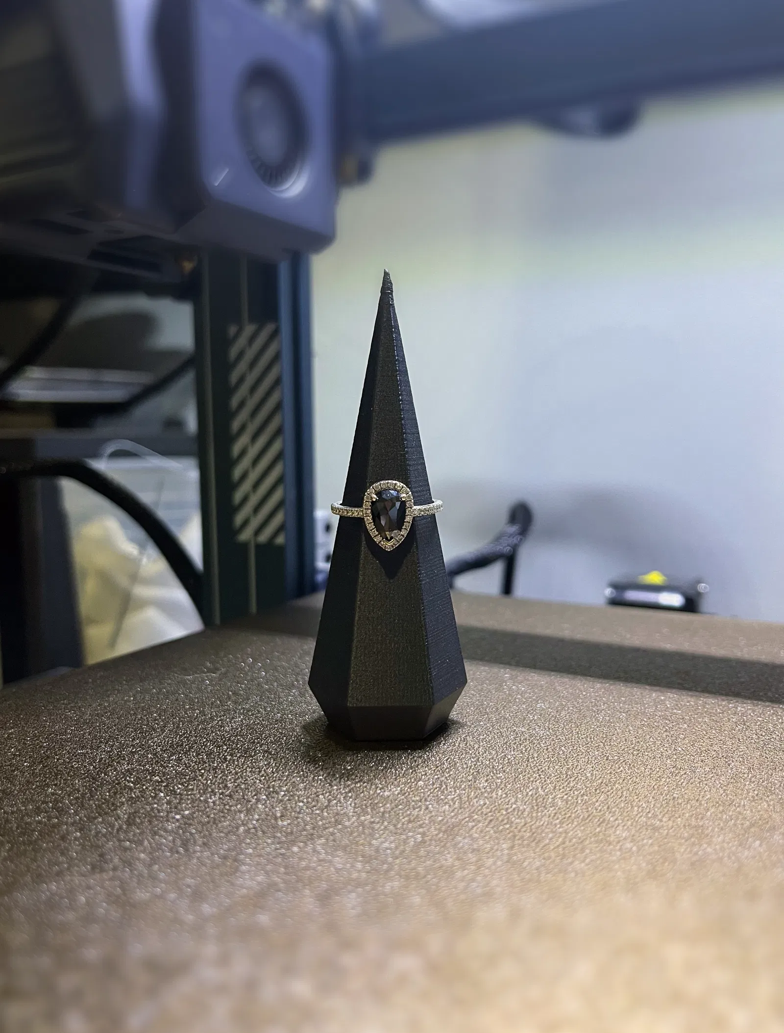 Cái kệ đựng nhẫn này nhìn tối giản và hiện đại lắm luôn. Tên 'Prism' thì hơi sai sai, nó giống cái kim tự tháp lục giác hơn, nhưng nghe kêu hơn là 'Kệ Đựng Nhẫn Hình Kim Tự Tháp Lục Giác' ha.