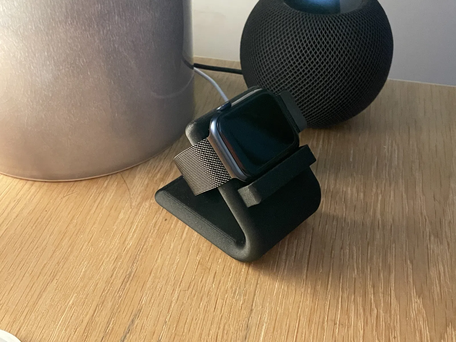 Chân sạc cho Apple Watch 6, in bằng sợi carbon hoặc gỗ đều đẹp. File có sẵn cho Prusa mini, in nghiêng để dễ dàng đỡ support và có độ bền cao ở các khu vực chịu lực.