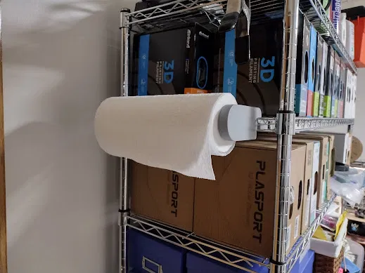 Đây là một cái giá giữ khăn giấy gắn chắc chắn vào bên hông các kệ dây. Nó dễ dàng tháo ra để thay cuộn. Hai nửa có thể gắn sát vào cuộn giấy để tạo đủ ma sát cho việc sử dụng một tay, hoặc để một khoảng trống nhỏ ở hai bên cuộn để quay tự do.