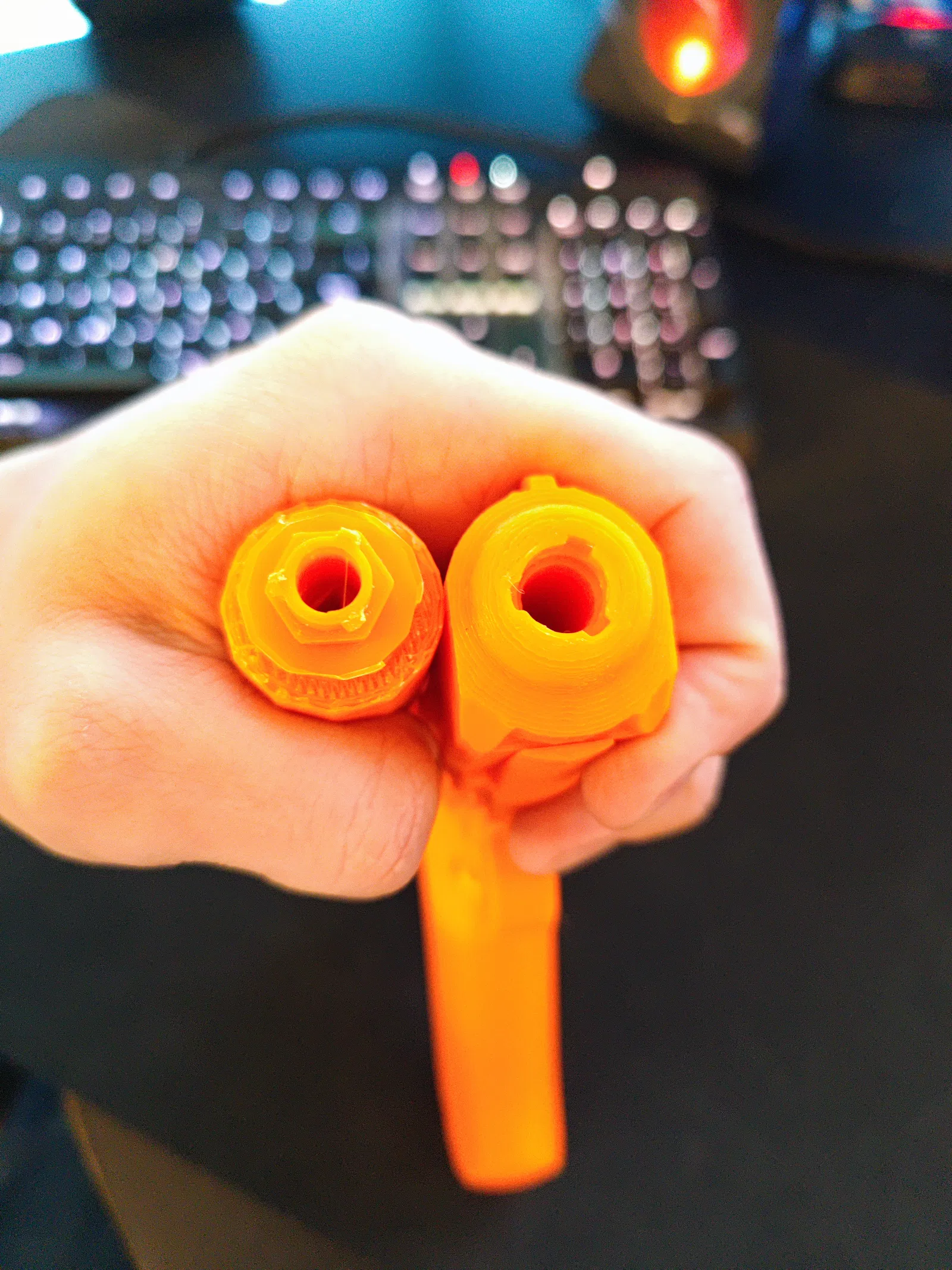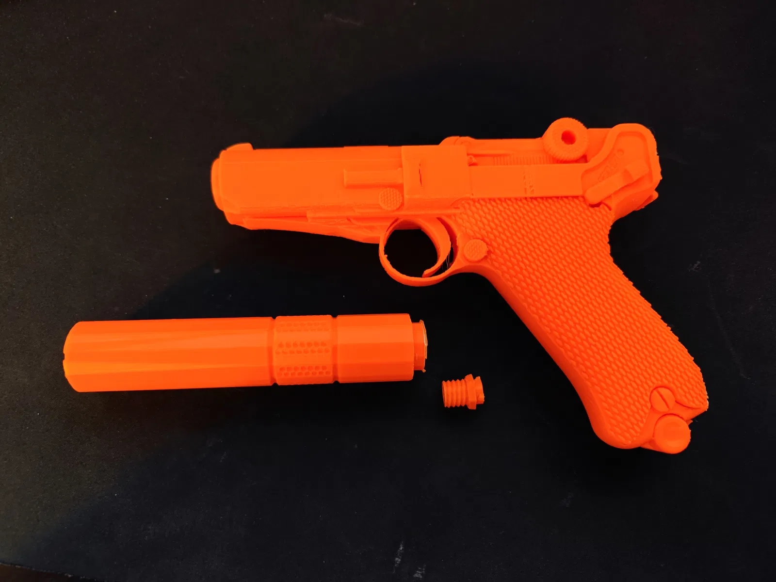 27/10/22 Sau RẤT nhiều lần thử và sai, tôi đã tạo ra một hệ thống gắn ống giảm thanh có thể thay nhanh và vặn vào. Nó bao gồm súng, bộ chuyển đổi chốt và ống giảm thanh. Tôi đã thêm một mẫu có ren gắn sẵn vì có lẽ nó chắc chắn hơn. Tuy nhiên, tôi thích mẫu có thể thay nhanh vì nó không làm thay đổi mặt cắt ngang của súng, giúp nó phù hợp hơn cho việc chụp ảnh. Cả chốt và ren đều được siết chặt bằng cách xoay chúng theo chiều kim đồng hồ khi súng chĩa ra xa bạn. Tôi đã in thử mọi thứ (RẤT NHIỀU) ngoại trừ mẫu có ren vì tôi chỉ đơn giản là gắn bộ chuyển đổi vào mô hình kỹ thuật số và coi như xong.