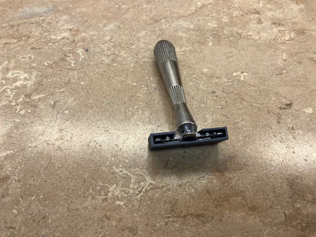 Một vỏ bọc du lịch dạng snap-on cho dao cạo Leaf Twig, kèm hộp nhỏ đựng lưỡi dao hai cạnh. Dễ in, không cần support, dùng vật liệu ABS cho khả năng chống nước tốt.