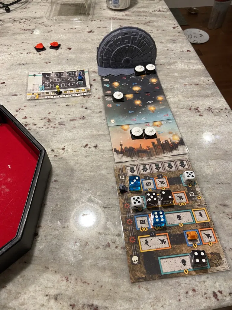 Under Falling Skiles là một game solo dạng Print and Play (PnP) cực hay (https://boardgamegeek.com/boardgame/273779/under-falling-skies-9-card-print-and-play-game).