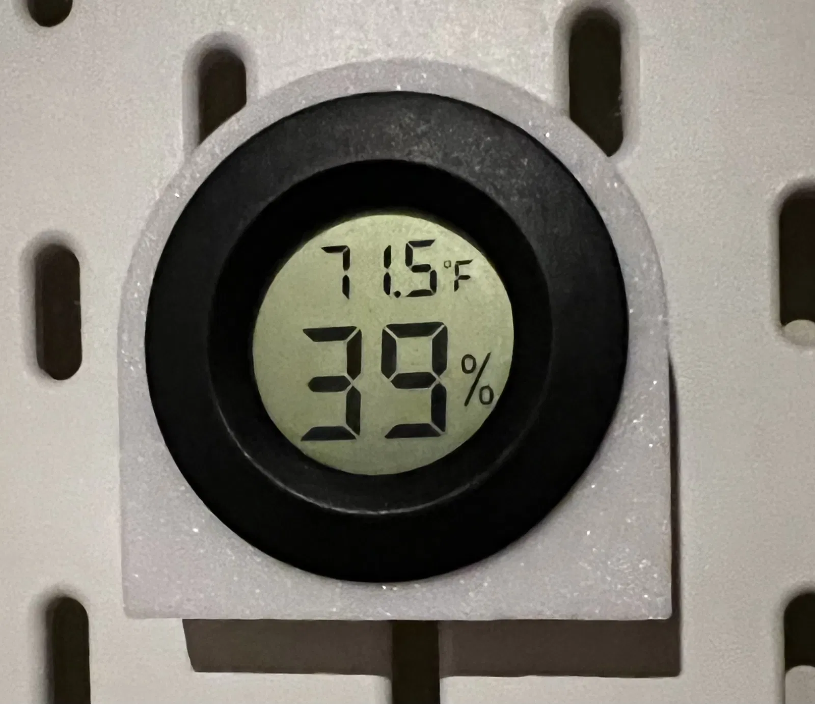 Chỉ là cái đế gắn đơn giản để treo đồng hồ đo nhiệt độ, độ ẩm lên kệ IKEA Skadis thôi à. Dễ dàng lắp đặt và tiện lợi cho anh em hay theo dõi chỉ số môi trường.