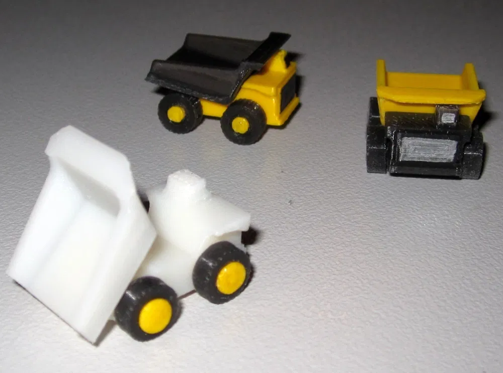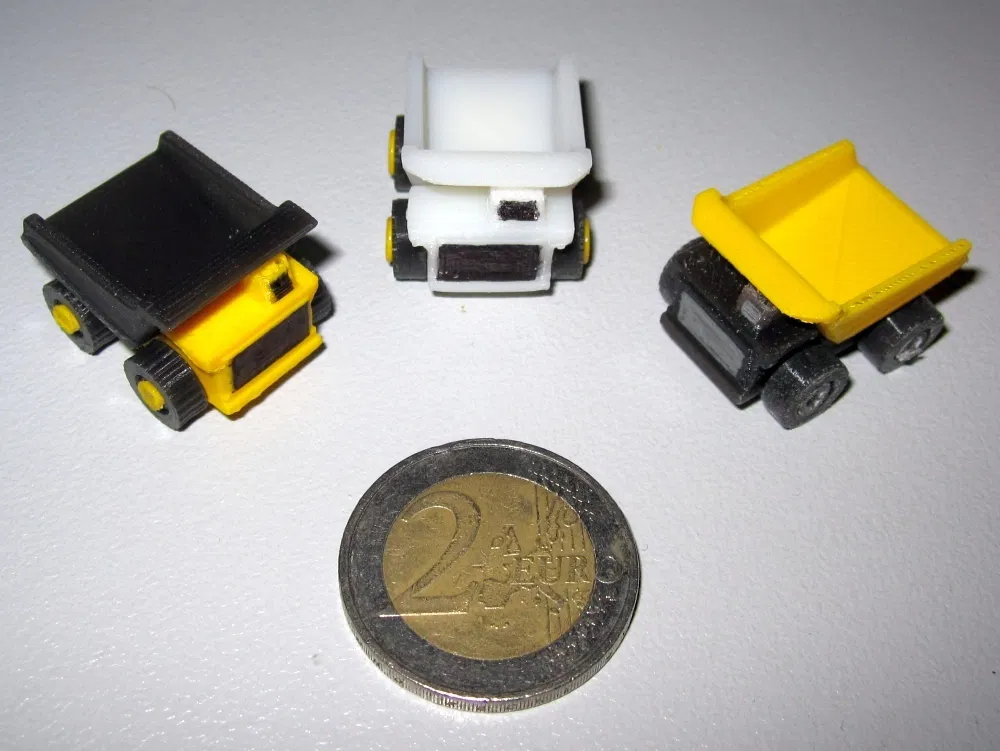 Tui thích mấy thứ nhỏ nhỏ, thích xe cộ nữa nên tui đã tạo ra chiếc xe ben siêu nhỏ - Micro Dumper - chỉ có 25 x 20 x 17 mm. Tui cũng có chỉnh sửa thêm về khung gầm và bánh xe cho phù hợp hơn. Bạn có thể tự làm một đoàn xe bằng cách in hoặc dùng sợi filament 3mm làm trục.