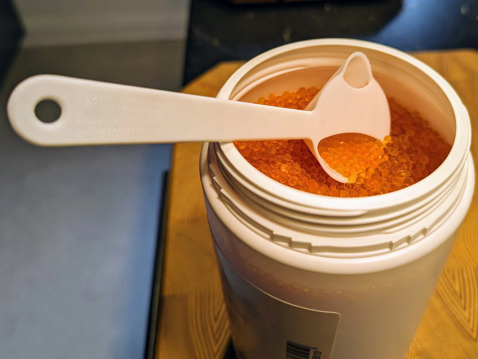 Đây là một cái muỗng giúp việc múc đồ ăn trở nên nhanh chóng và chính xác. Bạn có thể dễ dàng đổ đầy các hộp đựng chất hút ẩm nhỏ nhất và lớn nhất của mình mà không làm đổ những viên ngọc nhỏ li ti - tạm biệt phễu. Cái muỗng chưa scale có thể chứa ~12ml, tương đương 10g hạt silica gel.