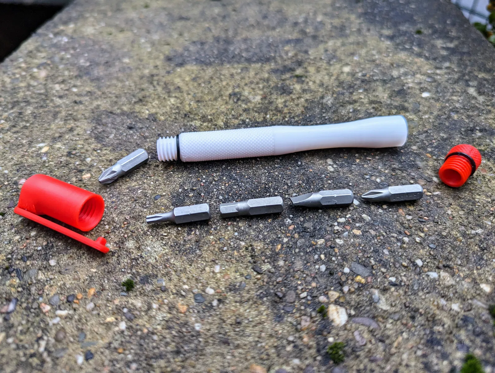Giới thiệu Tua Vít Kiểu Bút Chì cho 5 Mũi Vít, giải pháp mang theo nhiều mũi vít hơn! Với kẹp tiện lợi và chiều dài 145mm, tua vít này chứa 5 mũi vít tiêu chuẩn. Hướng dẫn in chi tiết, bao gồm cài đặt lớp, hỗ trợ và tối ưu hóa phần nhô ra. Lắp ráp đơn giản với các mũi vít vừa khít và tùy chọn nam châm. Gioăng tùy chọn giúp giữ ren chặt hơn.